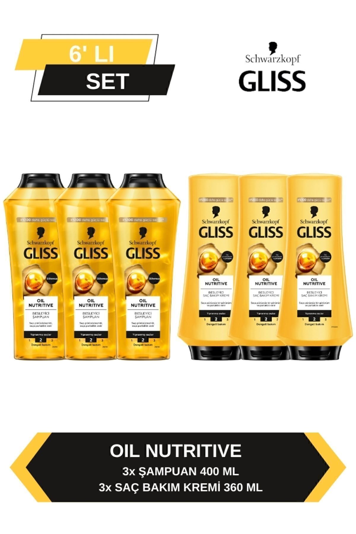 Gliss Oil Nutritive Shampoo 400ml x 3 + Conditioner 360ml x 3
