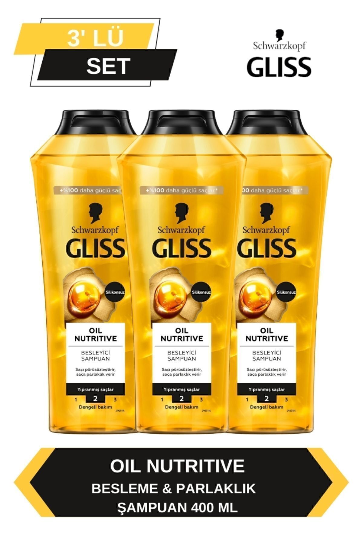 Gliss Oil Nutritive Shampoo 400ml x Set of 3