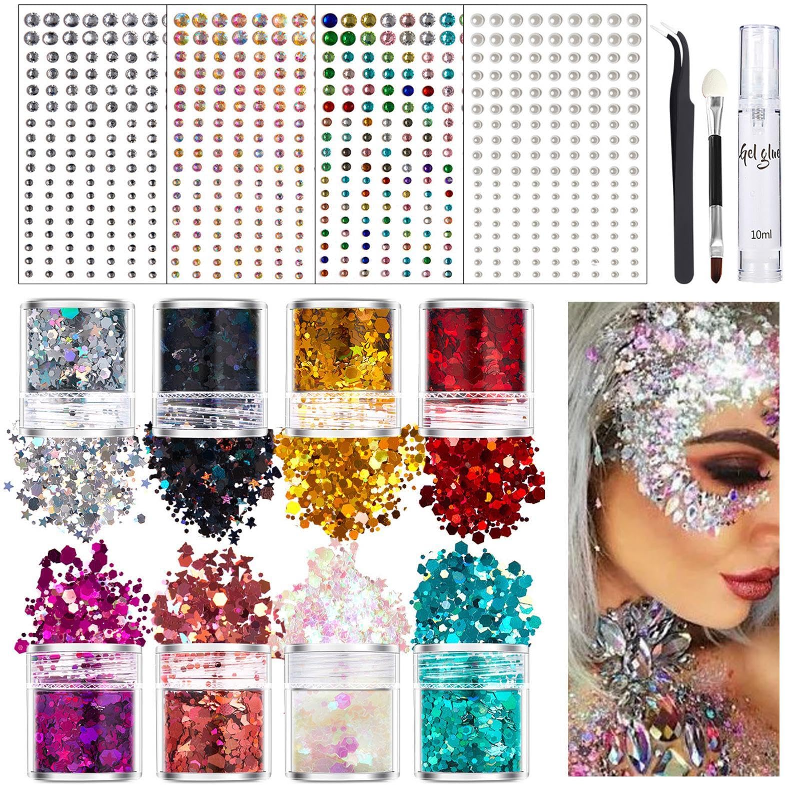 Peinture à paillettes pour le corps Peinture pour le corps à paillettes brillantes – avec colle gel et pinceau pour le visage Paillettes régulières Super Flash Fine Powder