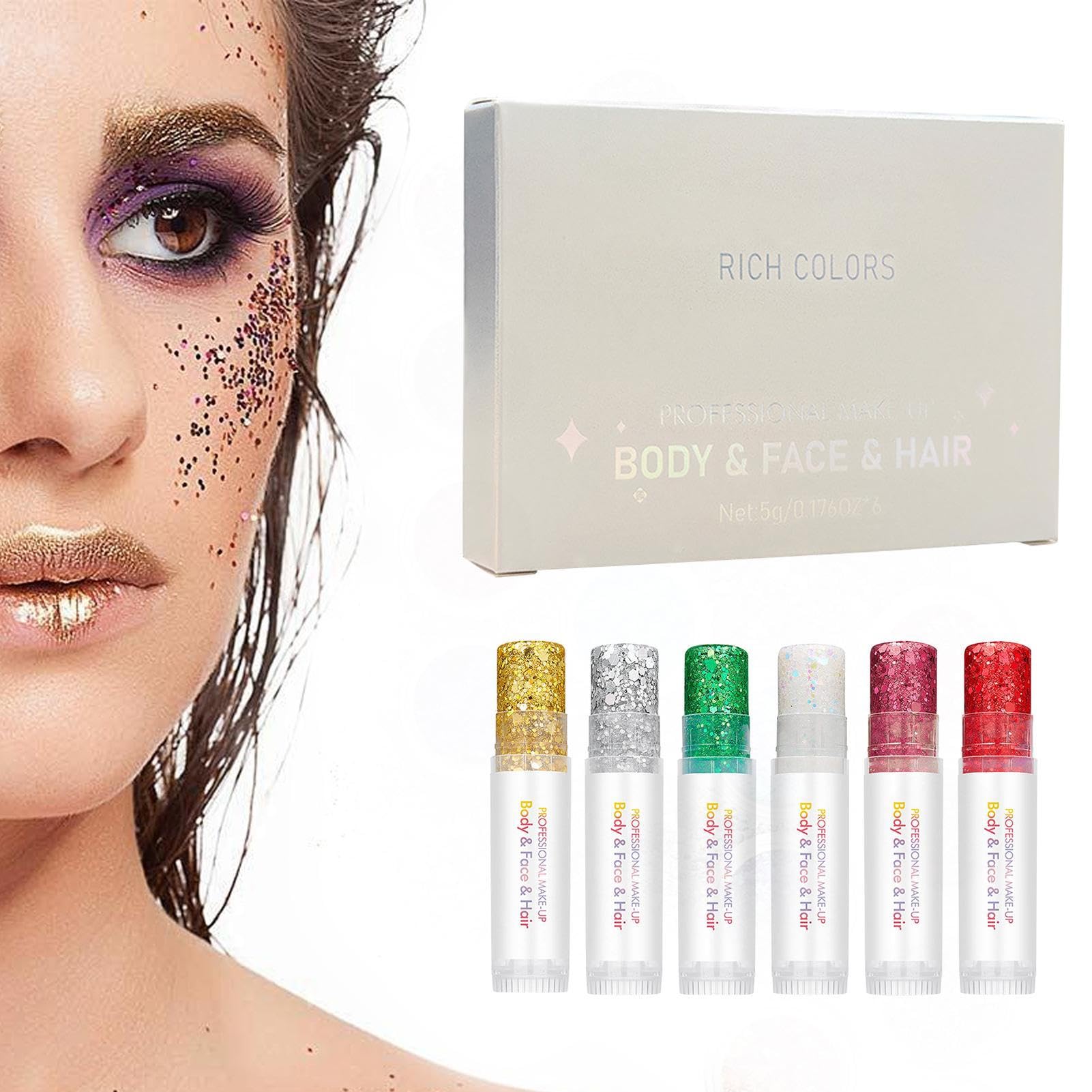 This glitter makeup set includes six vibrant glitter and gel sticks, perfect for creating dazzling designs. The smooth application ensures easy blending and vibrant results, ideal for festivals, parties, club nights, Halloween, carnivals, musical events, Christmas celebrations, and fairy-themed occasions. Specification: Net Content: 5g x 6 pieces Package List: Body Glitter Stick 1 set (6 pieces) Note: Due to different lighting and screen settings, the item's color may be slightly different from the picture. Due to different manual measurements, please allow a 1-2cm size difference.Clean-Up After Use: Designed for simplicity, the glitter body gel washes off perfectly with warm water, offering a convenient experience without intense rubbing. It's suitable for all-day events or creative projects, providing quick and hassle-free clean-up. The removal method is intuitive and promotes soft skin after each application. Easy and Even Application: This rotating glitter stick ensures smooth and even distribution on skin and hair, providing a radiant glow in moments without causing irritation near the eyes. Perfect for enhancing costumes, dance performances, or themed parties with ease, it allows for quick touch-ups and a professional finish for memorable occasions. Cool and Warm Shades: With six dreamy color shades, this glitter face gel seamlessly blends cool and warm tones, allowing users to experiment with designs that enhance their natural beauty at events, celebrations, or themed gatherings, for a dazzling result. Gentle and Non-Irritating: This glitter body stick features a skin-friendly formula that ensures non-irritating application, even on sensitive areas like the face and arms. Perfect for extended wear during fun family makeup workshops, it allows adults and children to safely participate in creative play without discomfort. The soft, lightweight texture promotes extended use during makeup practice. Sparkling Effect: The glitter body stick offers a captivating shimmer that catches the light, producing a dazzling glow under party or stage lights. Ideal for festivals and photoshoots, its reflective particles enhance your appearance with a radiant finish that instantly attracts attention. This shimmering effect ensures maximum visibility in busy environments, perfect for standing out at special occasions.Bâton De Paillettes Pour Le Corps, 6 Couleurs De Gel Peinture Scintillant, Maquillage Pour Le Visage Avec Paillettes, pour les Femmes lors des Festivals Concerts Soirées en Club Halloween Carnaval etDESCRIPTION DU PRODUIT Ce set de maquillage pailleté comprend six bâtons de peinture vibrante et gel, parfait pour créer des designs éblouissants. L'application fluide garantit un mélange facile et des résultats vibrants, idéal pour les festivals, les fêtes, les soirées en boîte, Halloween, les carnavals, les événements musicaux, les célébrations de Noël et les occasions sur le thème des fées. Spécification: Contenu net : 5g x 6 pièces Liste de colisage: Bâton de scintillage corporel 1 ensemble (6 pièces) Note: En raison de différents paramètres d'éclairage et d'écran, la couleur de l'élément peut être légèrement différente de l'image. En raison de différentes mesures manuelles, veuillez permettre une différence de taille de 1 à 2 cm.Nettoyage Après Utilisation: Conçu pour la simplicité, le gel pailleté pour le corps s'enlève parfaitement avec de l'eau tiède, offrant une expérience pratique sans frottement intense. Il est adapté aux événements de toute la journée ou aux projets créatifs, un nettoyage rapide et sans tracas. La méthode de retrait est intuitive et favorise une peau douce après chaque application. Application facile et homogène: Ce stick à paillettes rotatif garantit une répartition lisse et uniforme sur la peau et les cheveux, procurant un éclat radieux en quelques instants sans causer d'irritation près des yeux. Parfait pour sublimer les costumes, les spectacles de danse ou les fêtes à thème avec une grande facilité, il permet des retouches rapides et une finition professionnelle pour des occasions mémorables. des Tons Froids et Chauds: Avec six nuances de couleur rêveuses, ce gel pailleté pour le visage fusionne usement les tons froids et chauds, permettant aux utilisateurs d'expérimenter des designs qui mettent en valeur leur beauté naturelle lors d'événements, de célébrations ou de rassemblements à thème, pour un résultat éclatant. Doux et Non Irritant : Ce stick à paillettes pour le corps intègre une formule respectueuse de la peau qui assure une application non irritante même sur les zones sensibles, comme le visage ou les bras. Parfait pour un port prolongé durant les ateliers de maquillage ludique en famille, il permet aux adultes et aux de participer en toute sécurité à des jeux créatifs, sans risque d'inconfort. La texture douce et légère favorise une utilisation extended lors des entraînements de maquillage,. Effet Scintillant : Le stick à paillettes pour le corps offre un scintillement captivant qui saisit la lumière, produisant une lueur éclatante sous les éclairages de fête ou de scène. Idéal pour les festivals et les séances photo, ses particules réfléchissantes améliorent votre apparence avec une finition radieuse qui attire immédiatement l'attention. Cet effet de brillance assure une visibilité maximale dans les environnements animés, parfait pour ressortir lors d'occasions spéciales gr.