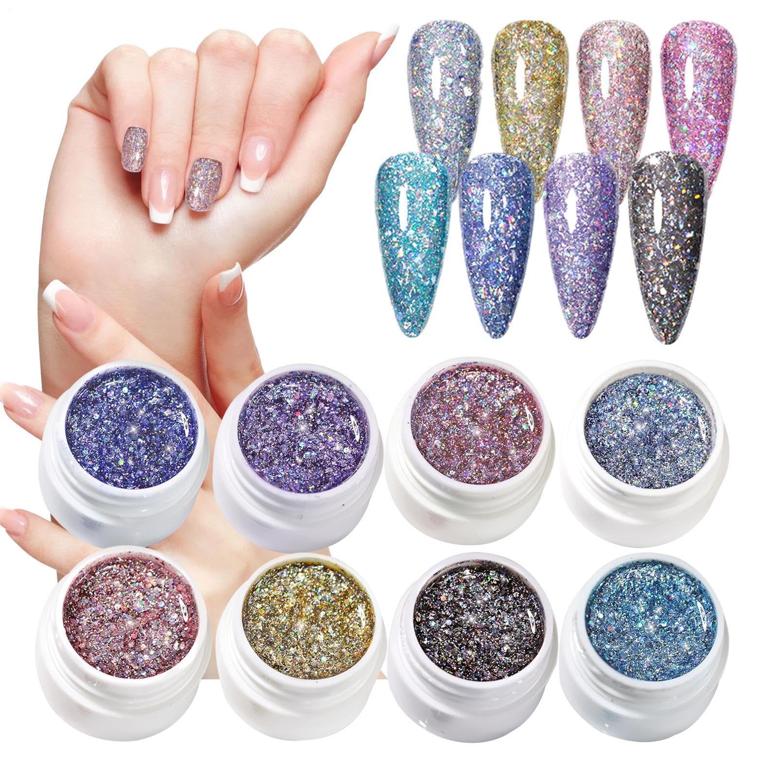 Glitter Gel | Iridescent Gel - 8 Glitter Colors Kit for Nail Care Manicure Pedicure Women's