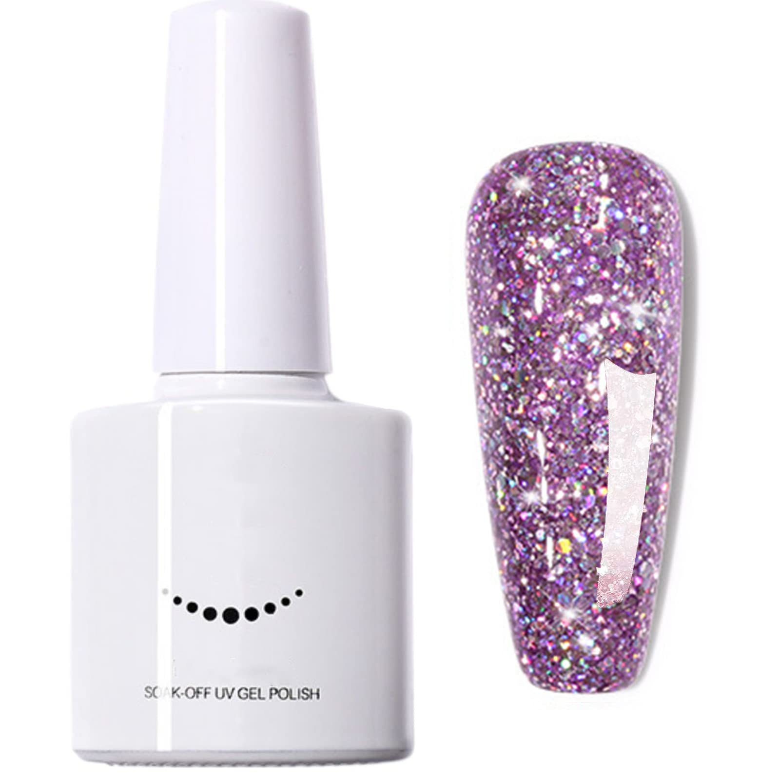 Glitter Gel Nail Polish Super Sparkling Color UV Gel Polish Vegan Long Lasting Nail Varnish Diamond Soak Off UV Gel Nail Varnish Gifts For Women & Girl Nail Art Wedding Holiday(Glitter purple)
