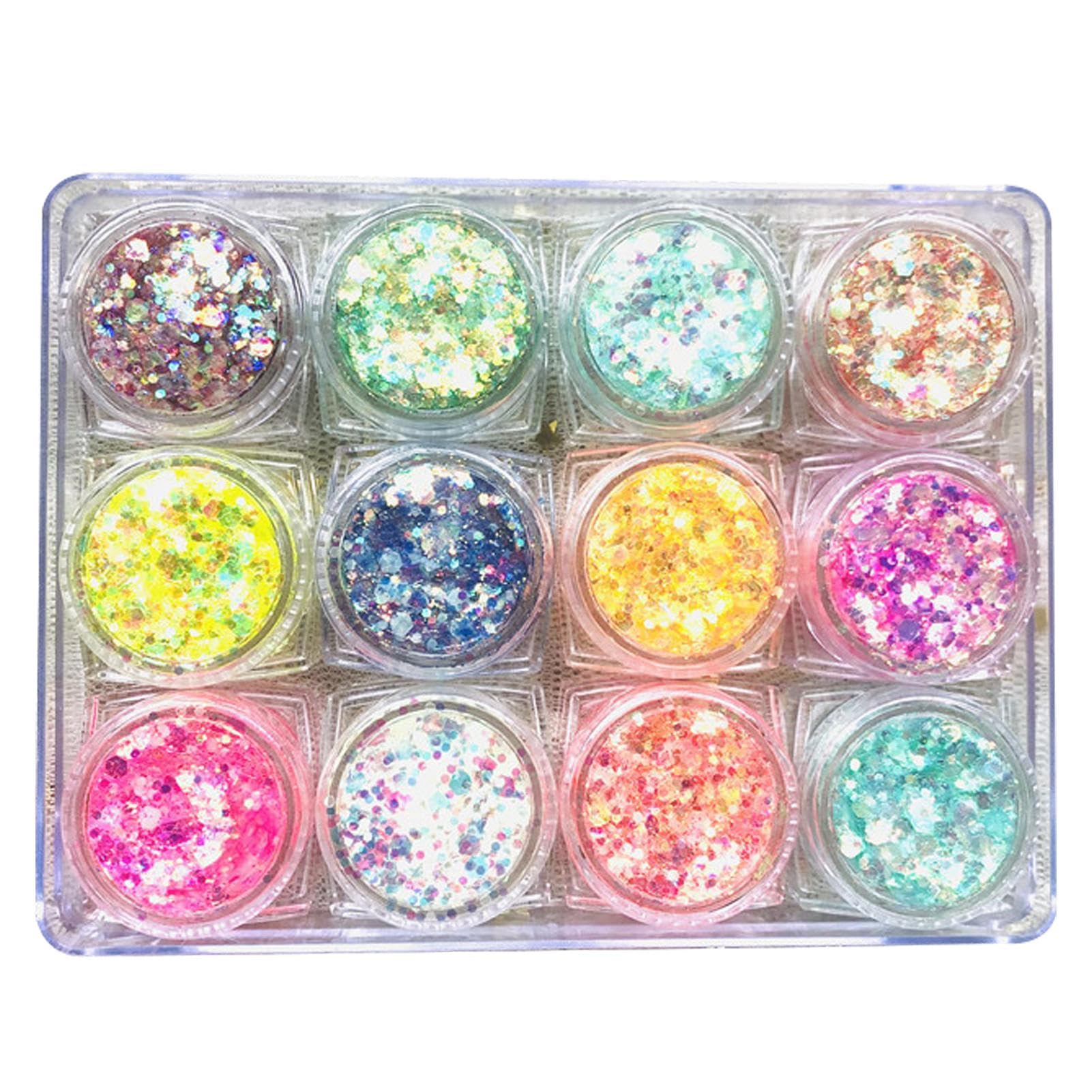 Maquillage pailleté pour le corps,Maquillage pailleté pour le visage et le corps - 12 couleurs de maquillage à grosses paillettes - Gel pailleté pour les lèvres et les ongles, à paupières liquid