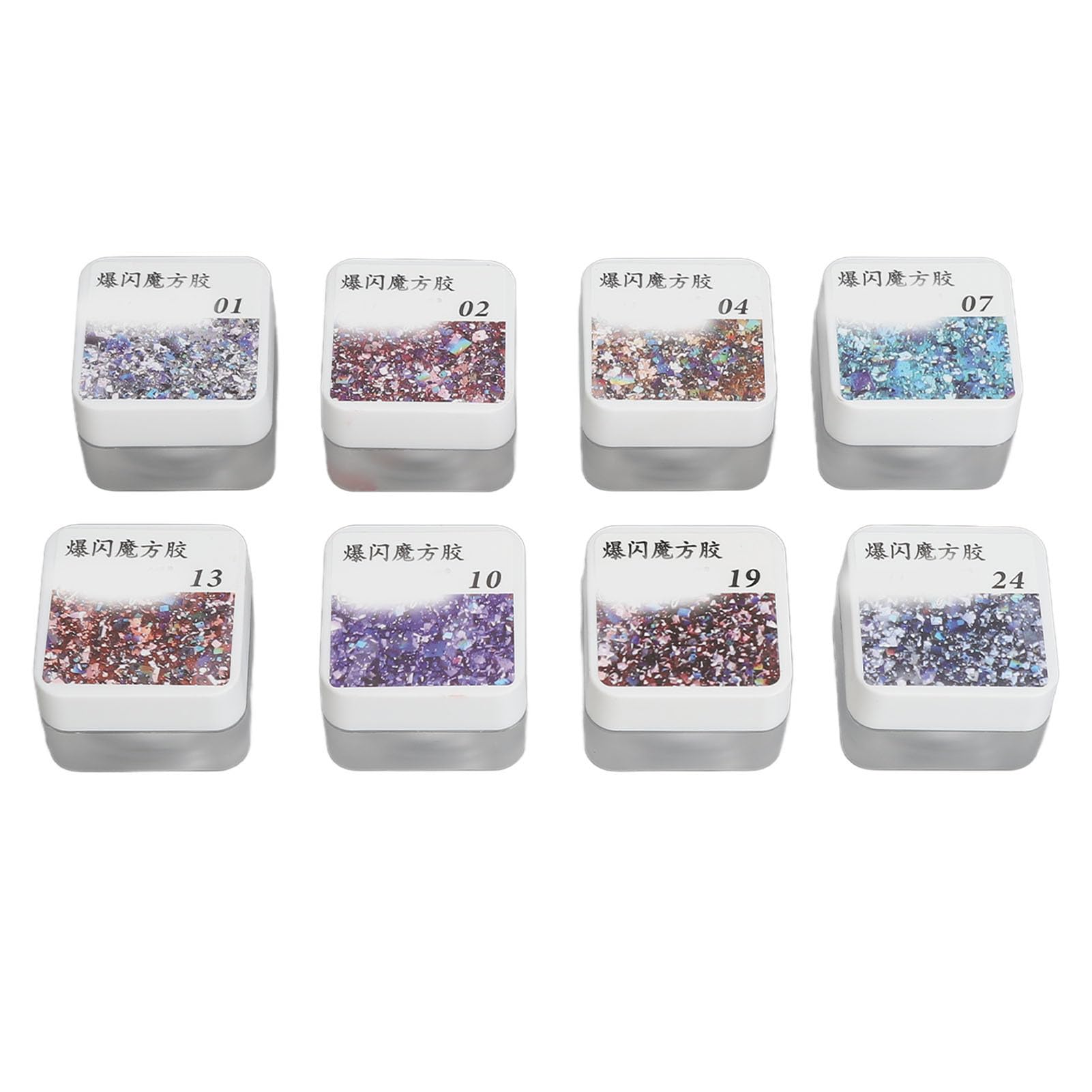 1. Versatile Color Combinations: Mix and match with various base colors to enhance your nail beauty. Different base colors will surprise you with unexpected results, adding a touch of creativity to your fingertips. 2. Silky And Shiny: Nail gels have a delicate texture, with light refracting dazzling colors that showcase your elegant feeling. They provide a silk like finish that elevates your nail art. 3. Sparkling Effect: With fine gel consistency,nail gels can be easily applied over any base color, which is allowing you to create dazzling DIY nail designs. 4. Bright Nail Art: Nail gels deliver long lasting and superior quality nail art. Suitable for various types of nail gels, they give you a durable and super shiny effect that lasts. 5. Easy To Use: DIY unique nail designs with this lightweight and portable set. Perfect for on the go nail art creation and extending your attractive nails, making your hands more appealing. Specification: Item Type: Glitter Nail Polish Gel Material: Colloid PackageList: 8 xGlitter Nail Polish Gels
