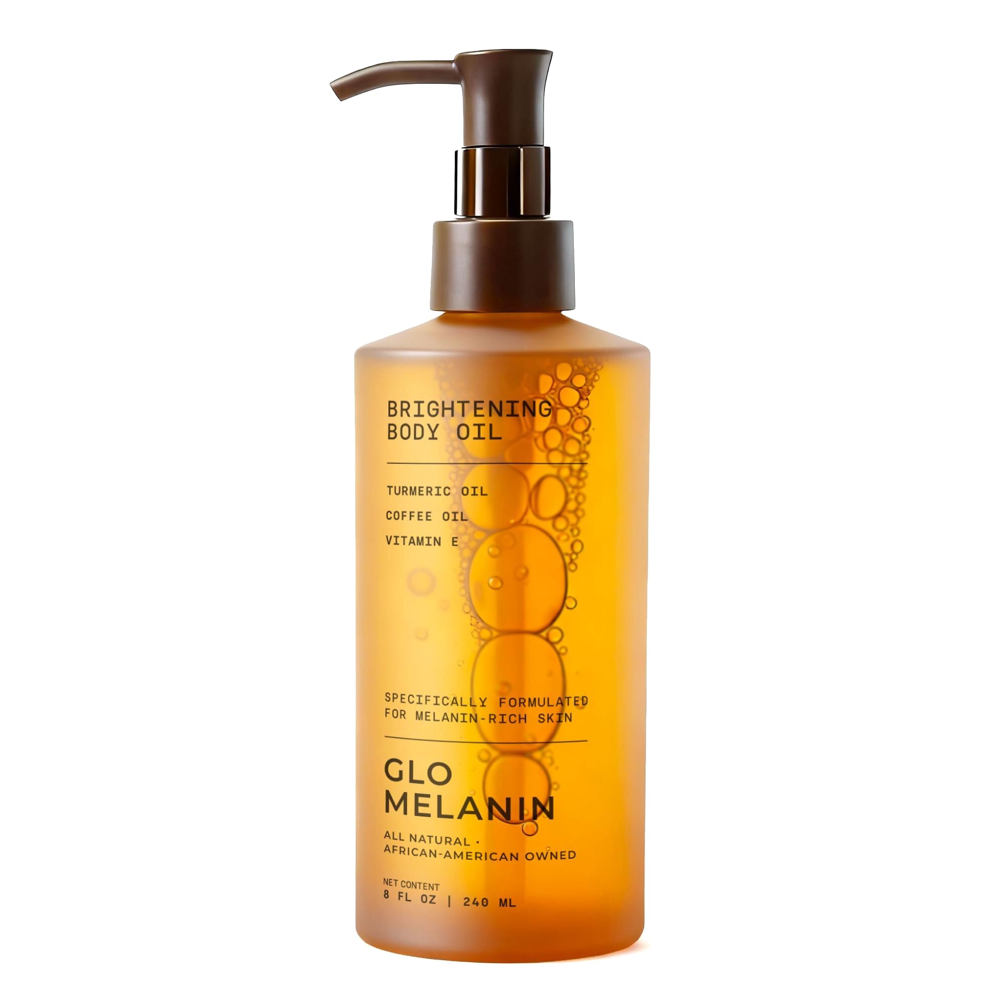 Glo Melanin Brightening Body Oil Topical Moisturizer with Vitamin C, Kojic Acid & Turmeric Lightweight Hydrating Cosmetic Oil for Melanin-Rich Skin (8 oz / 230 ml)