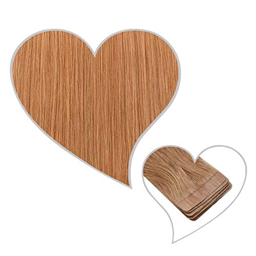 10 TAPE-ON-TUSTSIONS in copper blonde Remy Hair Extensions in premium quality High quality real hair-no matt, no knotted full hair up to the tip thanks to double drawn length: approx. 45-47 cm strand width: 4 cm weight per strand: 2.5 grams overall hair weight: 25 grams fastening with thin and almost invisible adhesive strips.Gentle type of hair extension.Also suitable for fine hair.The Skin Wefts are easily reusable, using renewable tape.Get a 3 -month guarantee on the purchased extensions in which you can order our care set.For more information, please click Tape in Extensions, also called Skin Wefts, are a gentle type of hair extension, since the hair extensions are attached without warmth.Thanks to the so-called sandwich method, the own hair is glued between two tape strands.Due to the larger width, the extensions have more support and are therefore well suited even with fine hair.After about 2 months of wearing time, the hair extensions have grown out so far that you have to put them up.You need a bonding solder to solve the hair extension.You need new adhesive strips (tapes) to reuse.We offer replacement tapes on the role of cutting it out and the tapes tailored.If the hair extension is well cared for, it can be high and worn for many months.Ingredients ingredients real hair