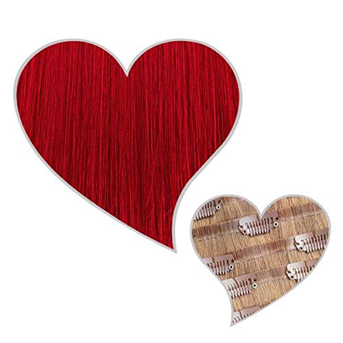 Clip-in-extensions nahtlos 120 Gramm 30 cm Rot remy-Echthaar Haarverlängerung. Keine Naht: hierbei handelt es sich um nahtlose clip-in-extensions. Das bedeutet, die Haare sind nicht vernäht, sondern haben ein geschmeidiges Silikonband, an dem die Clips befestigt sind. Dies garantiert ein bequemeres tragen.