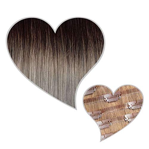 Clip-in-extensions nahtlos 150 Gramm 40 cm schwarzbraun grau Silber Echthaar nahtlose Clips. Keine Naht: hierbei handelt es sich um nahtlose clip-in-extensions. Das bedeutet, die Haare sind nicht vernäht, sondern haben ein geschmeidiges Silikonband, an dem die Clips befestigt sind. Dies garantiert ein bequemeres tragen.