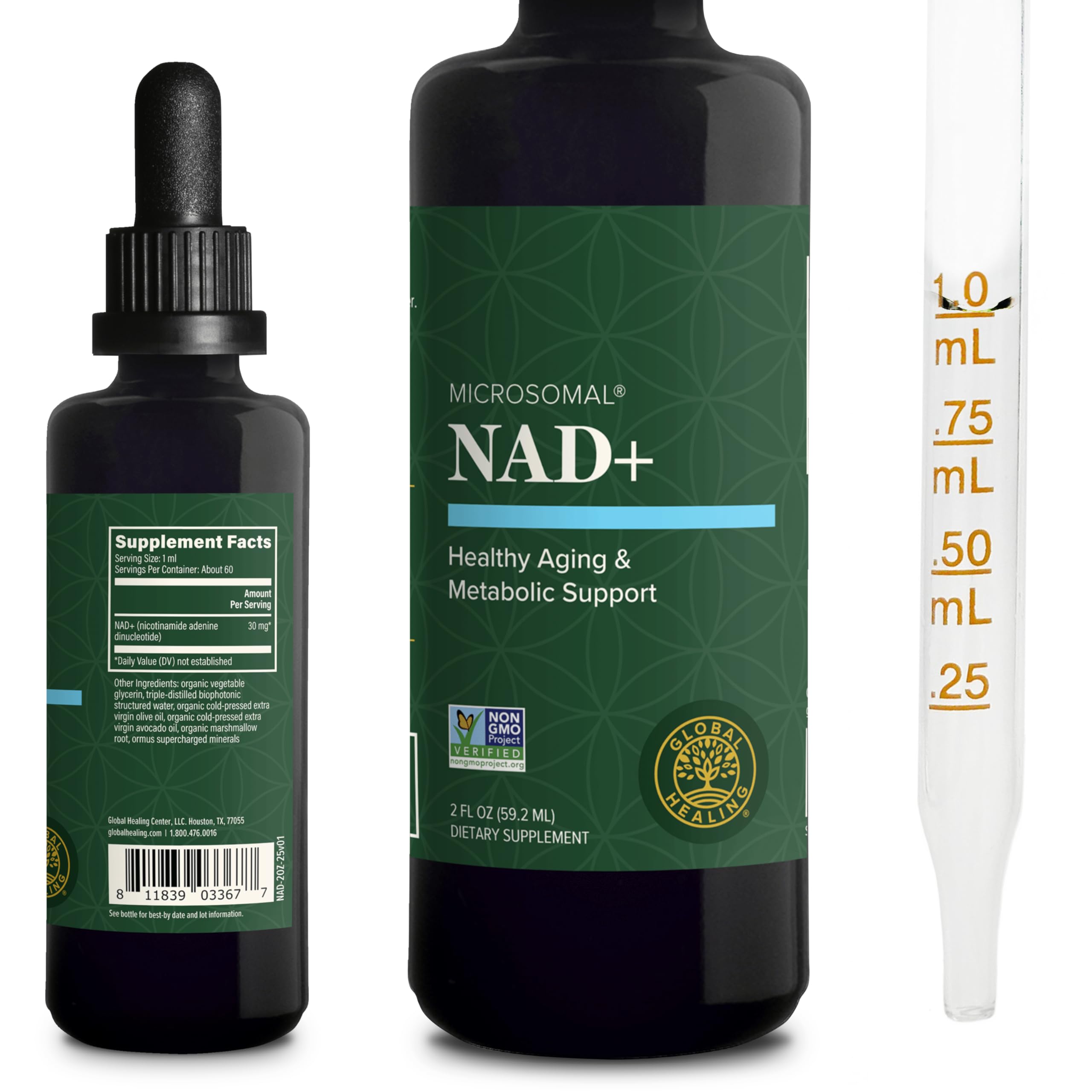 Global Healing Premium NAD+ Liquid Supplement - Sublingual NAD Drops - Liposomal NAD Plus Serum for Cellular Renewal - Nicotinamide Riboside Formula for Men & Women (2 Oz)