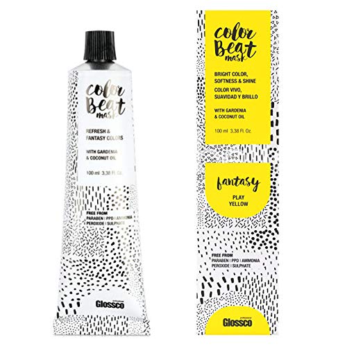 Directions for use: Apply directly to washed and towel-dried hair. Distribute the cream through the hair using a comb, your fingers, or a bowl and palette knife. Wearing gloves is recommended. Leave on for 3 to 5 minutes. The longer the application time, the more vibrant the color will be. Rinse thoroughly with water until the hair runs clear (do not use shampoo). If the color stains the skin, they can be removed with hair dye remover or a small amount of shampoo and cotton.FANTASY Nine colors, multiple options. Fantasy colors in all their expression. Apply them in their pure 100 version or blend them with Clear Gloss. All are customizable in terms of color intensity. You can create delightful pastel shades. You can also mix them together and create entirely new colors. Vibrant Color. Bold, refreshing colors and fantasy tones. In 100 ml. This oil complex composed of triglycerides maintains a high affinity with hair proteins and, due to its low molecular weight and linear chain structure, is able to penetrate the deepest layers of the hair fibers. Your hair is healthier than ever with a hair color that is free of ammonia, peroxide, sulfates, and PPD. Enriched with Gardenia and Coconut oils, Color Beat hair color nourishes and softens your hair like a restructuring hair mask. Refresh, blend, and care for your hair with every new color look. Create and personalize your color with whimsical and delicate shades. Immerse yourself in a world of possibilities where no color is impossible. Color Beat is the new cosmetic hair color from Glossco Professional. A semi-permanent cream hair color that provides total nourishment for your hair, leaving it with extraordinary shine and softness.Glossco, Masque Coloration semi-permanente en crème jaune - 100 mlDESCRIPTION DU PRODUIT Mode d'emploi : appliquer directement sur cheveux lavés et séchés avec une serviette. Répartir la crème sur les cheveux avec un peigne, les doigts ou avec un bol et une palette. Il est recommandé d'utiliser des gants. Laisser agir 3 à 5 minutes. Plus le temps d'exposition, plus la couleur reste vive. Rincez abondamment à l'eau jusqu'à ce que la lumière soit claire (ne pas utiliser de shampooing). En cas de taches sur la peau, elles peuvent être éliminées avec un dissolvant capillaire ou un peu de shampooing et de coton.FANTASY Neuf couleurs, plusieurs options. Couleurs fantaisie dans toute son expression. Appliquez-les dans leur version pure 100 ou leur version mélangée en les mélangeant avec Clear Gloss. Tous sont personnalisables en degré de couleur. Vous pourrez créer de délicieuses teintes pastels. Vous pouvez également les mélanger entre elles et créer des couleurs inédites. Couleur vive Couleurs vives, rafraîchissantes et tons fantaisie. En 100 ml. Ce complexe huileux composé de triglycérides conserve une affinité élevée avec les protéines des cheveux et, en raison de son faible poids moléculaire et de sa structure de chaîne linéaire, il est capable de pénétrer les couches les plus profondes des fibres capillaires. Vos cheveux sont plus sains que jamais avec une coloration sans ammoniaque, sans peroxyde, sans sulfates et sans PPD. Enrichi en huile de Gardenia et Coco, la coloration Color Beat nourrit et adoucit vos cheveux comme s'il s'agissait d'un masque capillaire restructurant. Rafraîchissez, mélangez et prenez soin de vos cheveux avec chaque nouveau look de couleur. Créez et personnalisez votre couleur avec les tons fantaisie et délicats. Plongez dans un universel dans lequel aucune couleur est possible. Color Beat est la nouvelle coloration cosmétique de Glossco Professional. Une coloration semi-permanente en crème qui apporte un traitement nutritif total pour vos cheveux et lui apporte une brillance et une douceur extraordinaires.