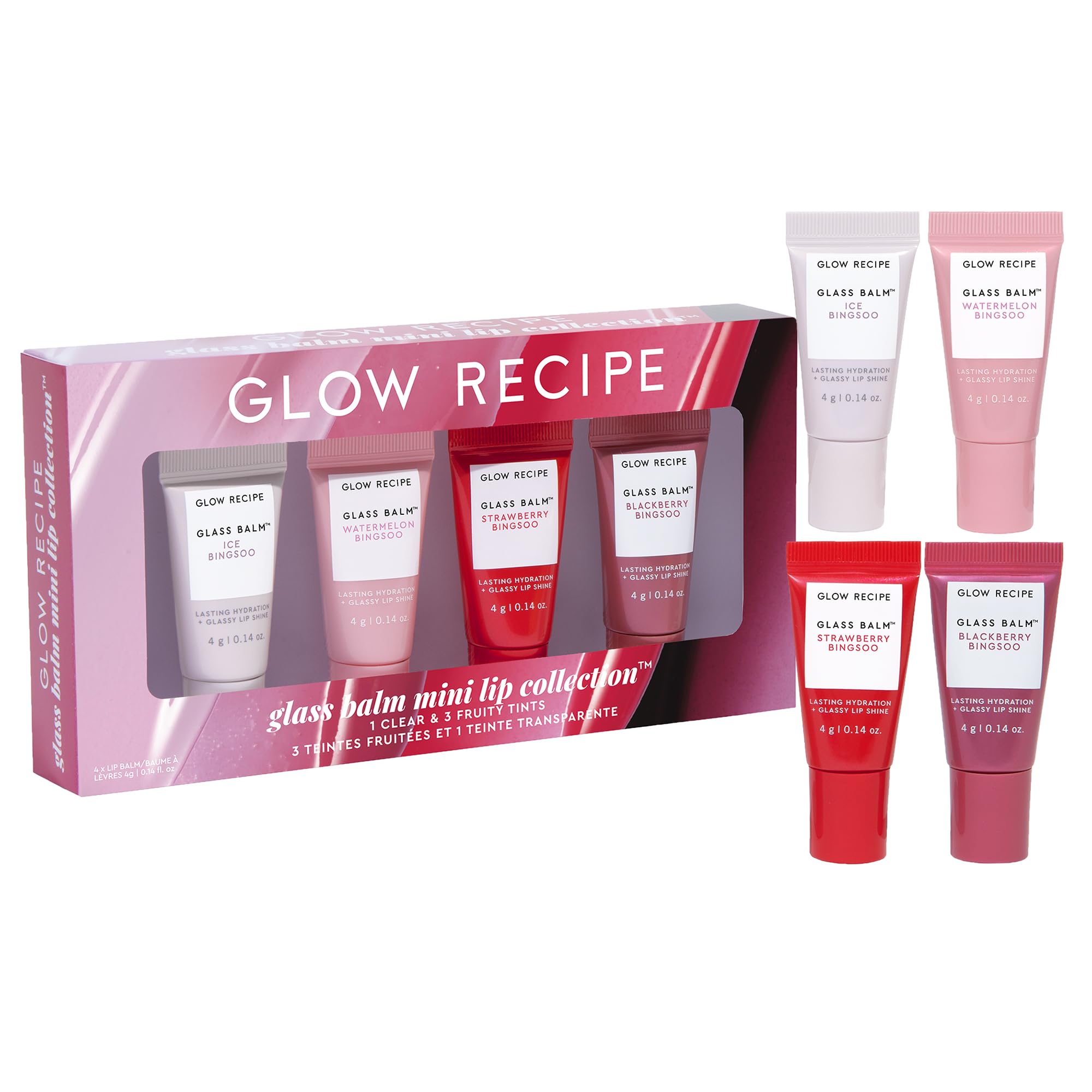 Celebrate the season with the Glow Recipe Travel Size Glass Balm Lip Treatment Holiday Collection, a festive four-piece set designed to keep lips glossy, soft, and hydrated all day. Inspired by the colorful Korean dessert Bingsoo, this limited-edition kit features travel-size balms in Ice, Watermelon, Strawberry, and Blackberry - each delivering juicy hydration with a sheer, high-shine tint. Infused with innovative hyaluronic acid microspheres, the formula cushions and plumps lips while smoothing the look of fine lines and locking in up to 12 hours of hydration. The lightweight texture glides on effortlessly, leaving lips bouncy, juicy, and never sticky. Wear each balm alone for a hint of color, or layer and mix shades to create your own customizable holiday lip glow. Whether it's Ice for a glossy veil, Watermelon for a fresh pop, Strawberry for a playful pink, or Blackberry for a bold berry finish, there's a shade for every festive moment. Packaged for easy gifting, this set makes the perfect stocking stuffer, holiday beauty treat, or self-care indulgence. Vegan, cruelty-free, and crafted without parabens, silicones, sulfates, or synthetic dyes, it's glossy hydration you'll want to gift and keep for yourself.Fruit-Powered Korean Skincare - Glow Recipe creates clean, clinically effective skincare rooted in K-beauty. Innovative, sensorial formulas pair antioxidant-rich fruit with gentle actives for real results. Vegan. Cruelty-free. Customizable Festive Glow - Layer or mix shades to create your own holiday-ready lip look. Lightweight and buildable, these balms deliver comfort, color, and shine without stickiness. Juicy, High-Shine Shades - Includes Ice, Watermelon, Strawberry, and Blackberry. Each shade delivers a sheer wash of color with a glossy finish that flatters every look, day or night. Clinically Proven Hydration - Each balm is powered by hyaluronic acid microspheres that flood lips with moisture, smooth fine lines, and cushion lips with long-lasting hydration for up to 12 hours. All-Day Hydration Gloss - This 4-piece lip balm set keeps lips smooth, plump, and glossy all season. Each travel-size balm delivers juicy hydration with a high-shine finish, making it the perfect holiday-ready pout in one routine.