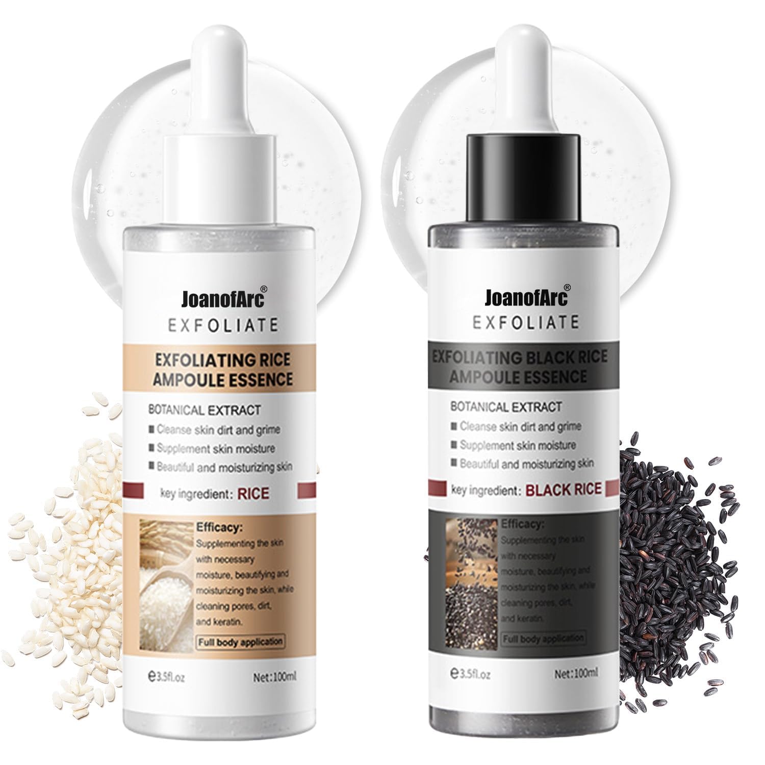 Unveil Your Glow: The Dual-Action Rice Ampoule Set. This isn't just another serum it's a targeted exfoliation and renewal system. Our unique duo combines a Black Rice Ampoule for deep, gentle exfoliation and a White Rice Ampoule for intense hydration and brightening. Lightweight and fast-absorbing, this formula works for all skin types to reveal smoother, softer, and radiantly luminous skin. Dual Power, Visible Solutions • Black Rice Peeling Ampoule: Formulated with natural rice enzymes and mild AHA, this gentle peeling serum works to dissolve dead skin and unclog pores. Perfect for face and body, it smooths texture and preps skin for better absorption. • White Rice Hydrating Ampoule: Infused with rice bran extract and hyaluronic acid, this lightweight serum delivers a surge of moisture. It helps to plump, soothe, and brighten the complexion, leaving skin supple and glowing. Experience the Transformation Imagine waking up to skin that feels reborn. Use the Black Rice Ampoule 2-3 times a week for a refined, silky-smooth canvas. Follow daily with the White Rice Ampoule to lock in hydration and target dullness. Perfect for your morning care or as a nourishing care before bed. Gentle Formula Our dermatologist-tested formula is free from harsh chemicals, parabens, and sulfates. Each lightweight, non-sticky ampoule is designed for sensitive skin, delivering visible sollutions without irritation. Your Complete Kit Each set includes: Black Rice Peeling Ampoule (3.5 Fl Oz) x1, White Rice Hydrating Ampoule (3.5 Fl Oz) x1. Total: 2 bottles. Our Promise to You We stand behind the quality of our skincare. If you're not satisfied with your glow, contact us for support. Your journey to radiant skin starts here.