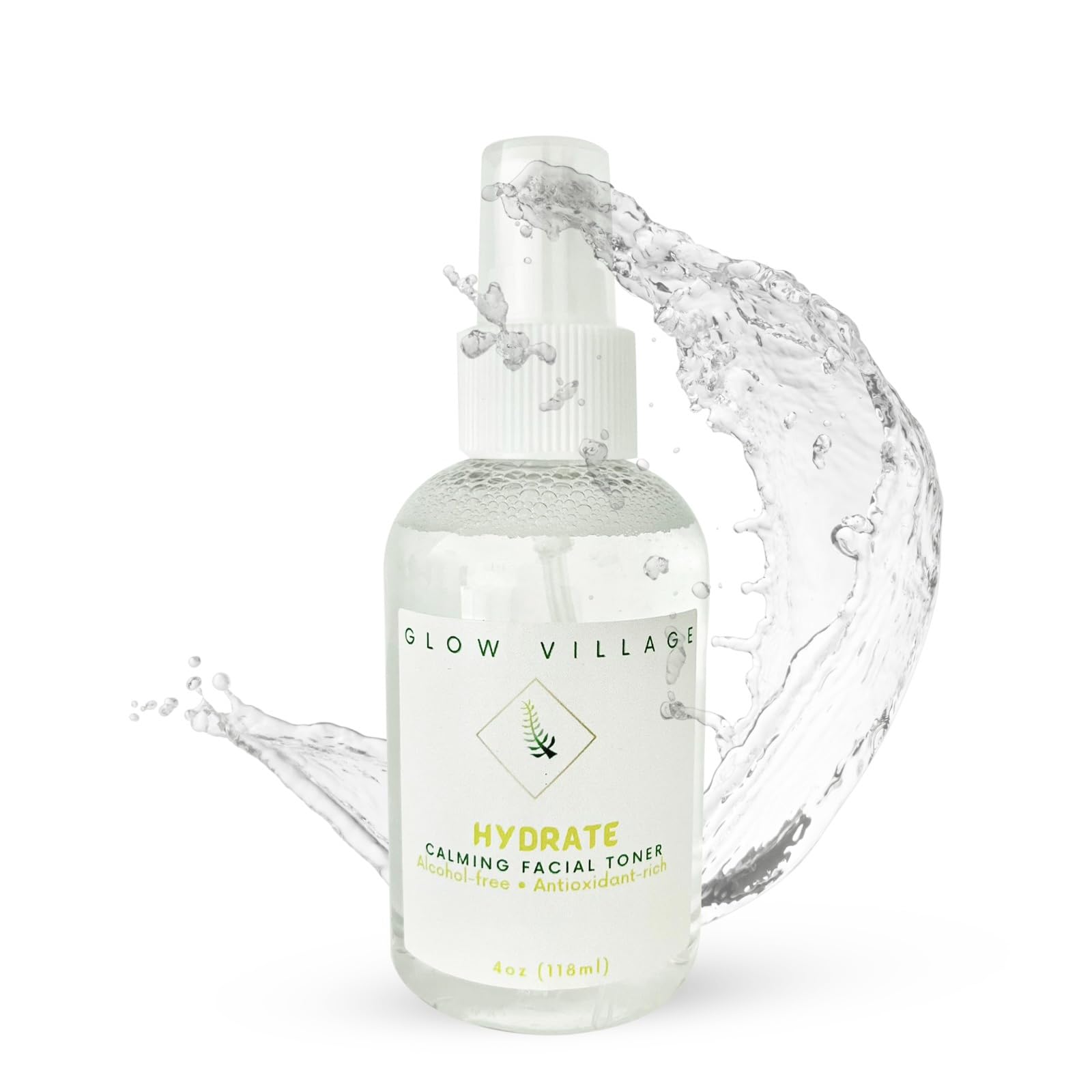 Glow Village Hydrate Calming Facial Toner | Alcohol-Free Oil-Free Vegan Organic Aloe Vera and Rosewater Witch Hazel Tea Tree | pH Balancing Pore Tightening for All Skin Types | 4 oz