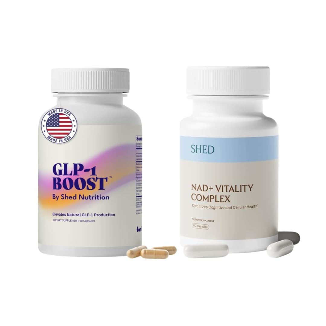 Take charge of your health from the inside out with this expert-formulated GLP-1 Boost NAD Vitality Complex Bundle. Together, these daily supplements work in synergy to support natural appetite regulation, metabolism, sustained energy, and healthy aging—without stimulants, fad diets, or complicated routines. GLP-1 Boost: Helps activate your body's natural "un-hunger hormone" to promote appetite control, reduce cravings, and support long-term weight management with clinically studied ingredients like Eriomin, Berberine, and Capsaicin. NAD Vitality Complex: Supports energy production at the cellular level, brain function, and metabolic health with NR, Alpha-GPC, TMG, Resveratrol, and methylated B vitamins—helping you feel sharp, focused, and revitalized at any age. This bundle delivers 150 total capsules—a complete foundation for sustained energy, balanced appetite, and a stronger sense of control over your wellness journey.Premium Quality You Can Trust – Made in the USA in GMP-certified, FDA-registered facilities vegan, non-GMO, and third-party tested for purity and potency. . Healthy Aging Cognitive Support – NAD boosters work at the cellular level to support brain health, metabolic function, and resilience as you age. . Support Healthy Weight Energy Naturally – Promote satiety, balance cravings, and fuel your cells for sustained energy—without stimulants or harsh additives. . Science-Backed Ingredients – GLP-1 Boost features Eriomin, Berberine, and Capsaicin NAD Vitality Complex includes Nicotinamide Riboside, Alpha-GPC, TMG, and methylated B vitamins. . Dual-Action Wellness Support – Combines appetite and metabolism support from GLP-1 Boost with energy, clarity, and healthy aging benefits from NAD Vitality Complex. .