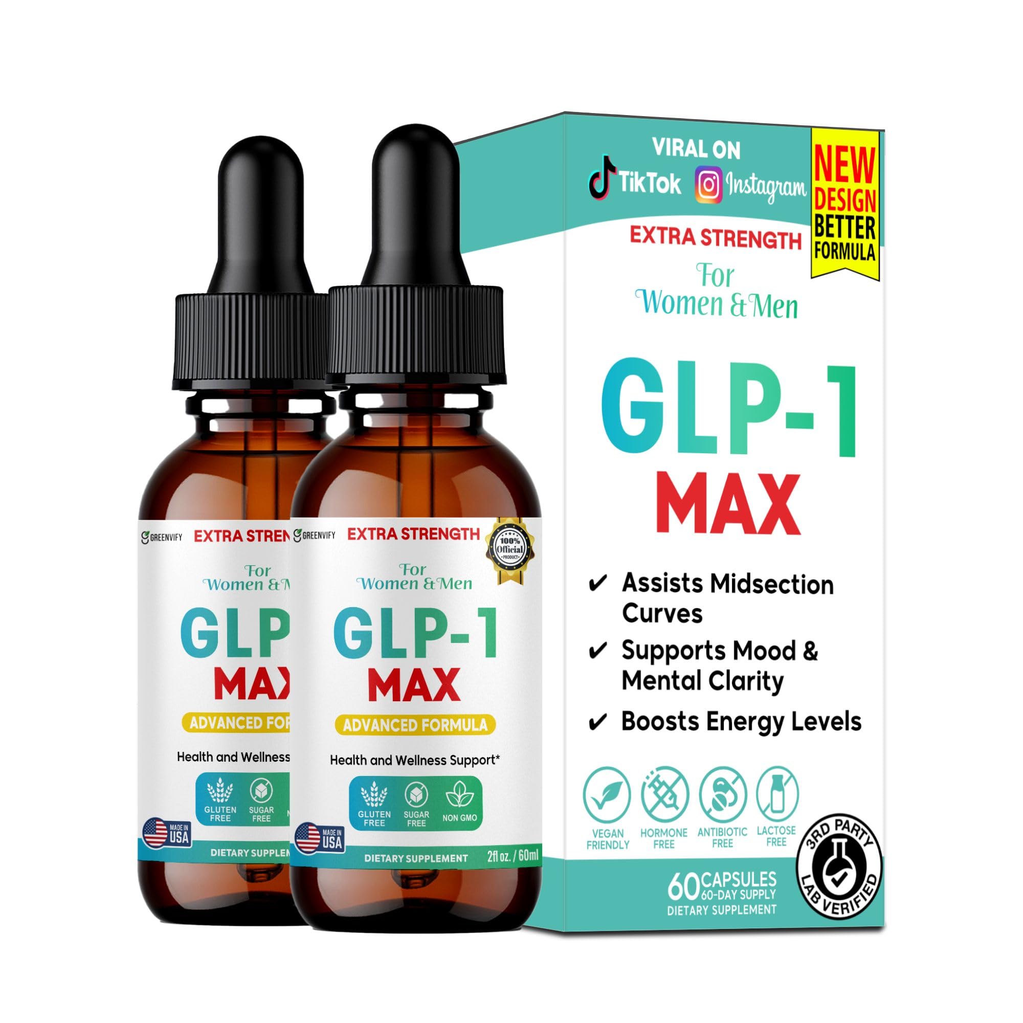 GLP-1 MAX Extra Strength Liquid Drops, Advanced Formula for Women Men, 60 Servings, 2 fl oz