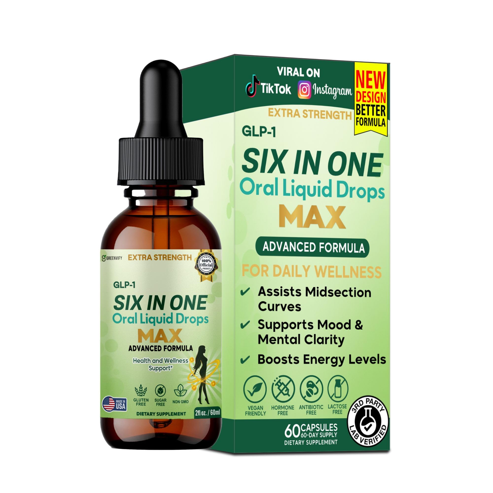 Nutritional Supplement: Designed as a dietary supplement to support your wellness routine and complement a healthy lifestyle. Six in One Comprehensive Support: Combines six beneficial components in one convenient formula to provide comprehensive nutritional supplementation. Generous Supply: Each 2 fl oz bottle provides 60 servings, offering a two-month supply when taken as directed for consistent daily use. Convenient Oral Liquid Drops: Easy-to-use liquid drop format allows for quick absorption and simple daily supplementation without the need for swallowing large pills. Extra Strength Advanced Formula: GLP-1 Six in One Oral Liquid Drops Max features an advanced formula designed to deliver maximum potency in every serving.