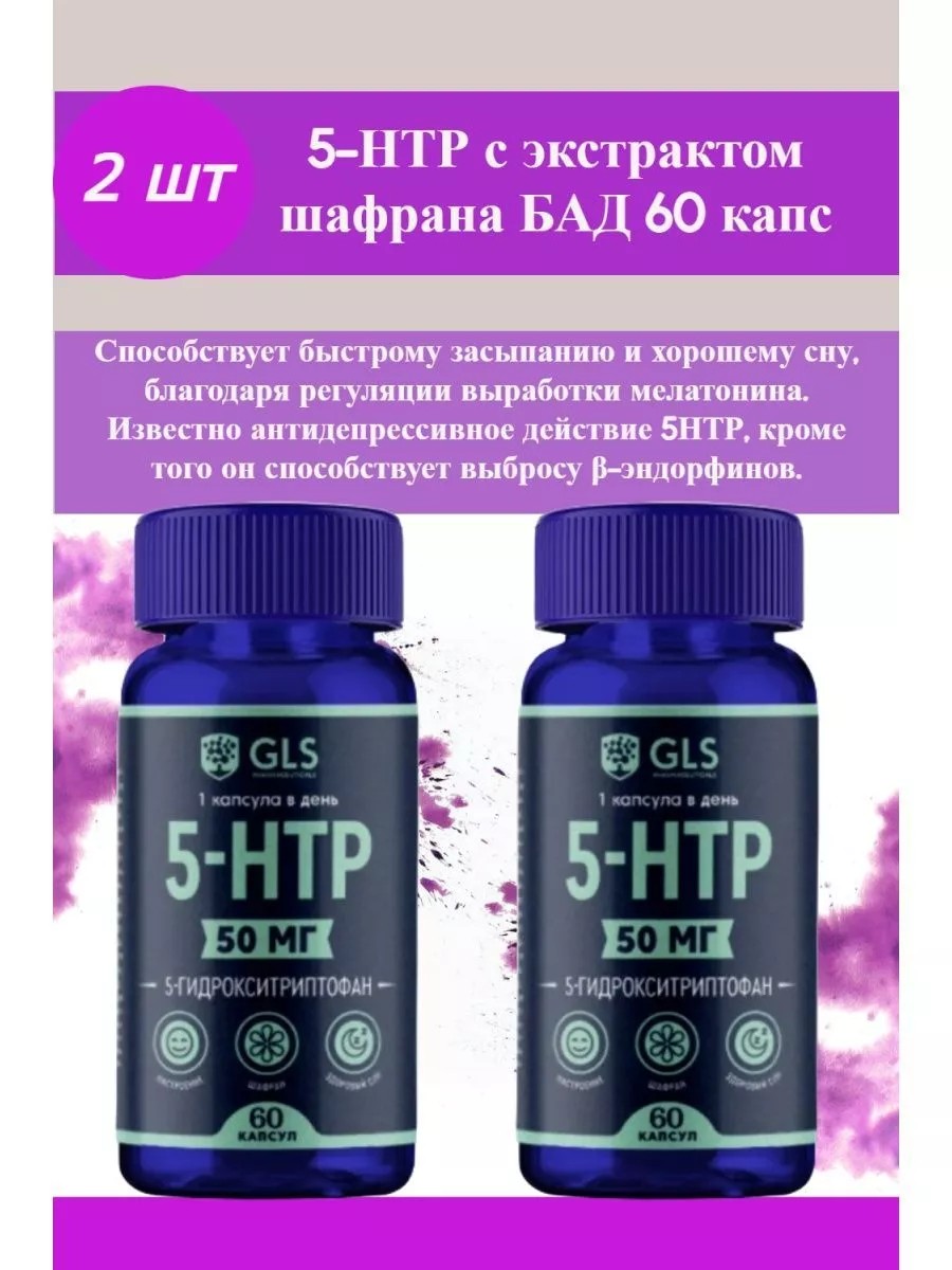 5-НТР предшественник серотонина гормона счастья, ответственного за регулирование настроения и поведения. Нормальный уровень серотонина способствует ощущению спокойствия, контролю за настроением и чувством голода. 5 HTP (5-ХТП, 5-гидрокситриптофан) способствует быстрому засыпанию и хорошему сну, благодаря регуляции выработки мелатонина. Известно антидепрессивное действие 5 НТР, кроме того он способствует выбросу эндорфинов. Магний способствует передаче информации в головном мозге и снижает нервное перенапряжение. Магний помогает бороться со стрессом, регулирует настроение и нормализует сон.Шафран, благодаря активным компонентам входящих в его состав, улучшает настроение, снижает тревожность, помогает бороться со стрессом и улучшает память. Так же шафран обладает сильной антиоксидантной активностью, что позволяет защищать нервную систему от окислительного стресса. Витамины и добавки от GLS Pharmaceuticals это высококачественная продукция от надежного производителя. Вся продукция сертифицирована и изготавливается на собственном производстве, проходя многоэтапный контроль качества.БАД. Не является лекарственным средством. ### Способ применения:Взрослым по 1 капсуле в день во время еды. Продолжительность приема - 1 месяц. При необходимости прием можно повторить.