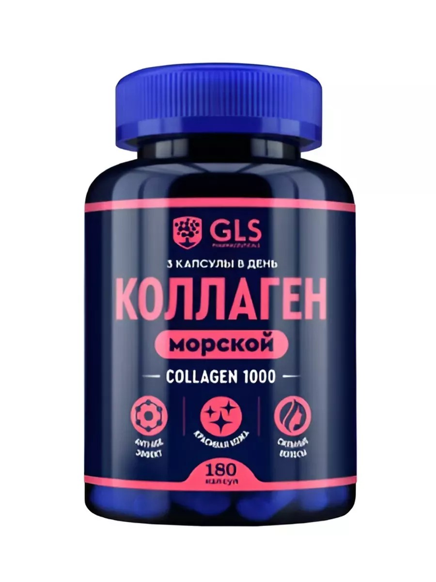 GLS КОЛЛАГЕН 1000 - Биологически активная добавка (БАД) к пище - Коллаген - основной строительный белок соединительной ткани, находится во всех органах и тканях организма.Коллаген придает тканям упругость и эластичность. С возрастом выработка коллагена уменьшается.В связи с этим снижается упругость кожи, появляются морщины, ломкость ногтей, ослабевают волосы, ощущается мышечная слабость, кости и суставы становятся хрупкими. Коллаген, полученный из рыбы, легко усваивается и является основным типом коллагена во всем организме.Гиалуроновая кислота - входит в состав кожи, питая и увлажняя ее. Гиалуроновая кислота удерживает воду, помогая тем самым коллагену поддерживать упругую структуру кожи. Кроме того, она входит в состав синовиальной жидкости, которая смазывает сустав, предохраняя его от повреждений.Витамин С - способствует выработке коллагена и оказывает антиоксидантную защиту.3 вегетарианские капсулы содержат:гидролизат рыбного коллагена - 1050 мг;гиалуроновая кислота - 45 мг;аскорбиновая кислота - 100,5 мг