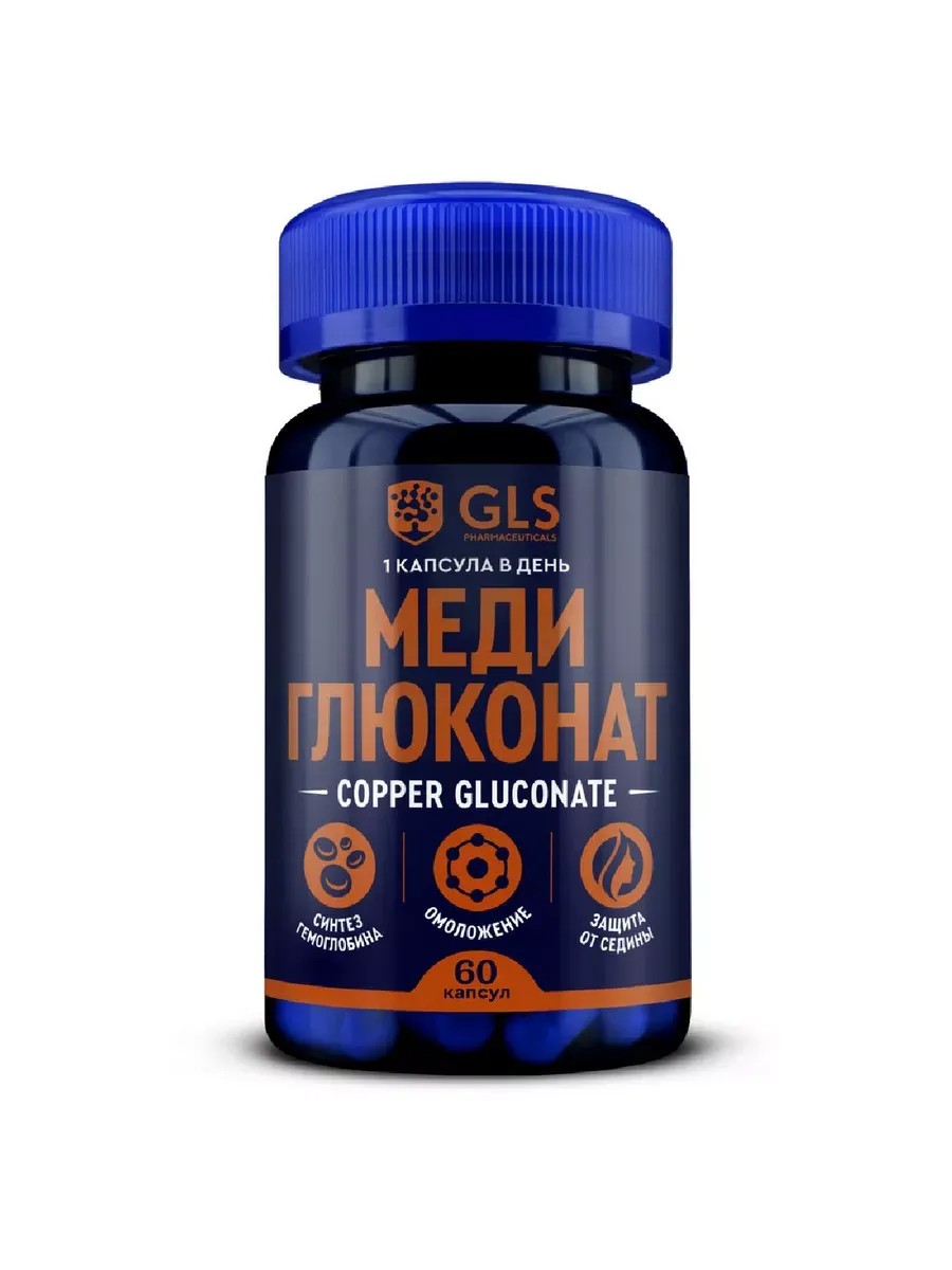 GLS МЕДИ ГЛЮКОНАТ - Биологически активная добавка (БАД) к пище - синтез гемоглобина, омоложение, защита от седины