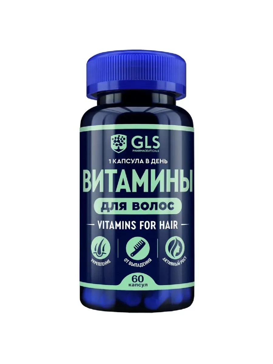 GLS ВИТАМИНЫ ДЛЯ ВОЛОС - Биологически активная добавка (БАД) к пище - комплекс направлен на поддержку и восстановление волос.Улучшает микроциркуляцию и энергообеспечение волосяных фолликулов, препятствуя их выпадению.Стимулирует синтез коллагена и кератина, способствует росту волос. Защищает волосы от неблагоприятного воздействия внешних факторов.Снижает жирность волос, нормализуя работу сальных желез.Помогает сохранить объем. Активно растущий волос - упругий, он не согнется у корня и приподнимет вашу прическу.Защищает от преждевременного появления седины, способствуя сохранению цвета волос.1 вегетарианская капсула содержит:Витамина С 59 мг,Витамина В1 2,2 мг,Витамина В3 16 мг,Витамина В5 5,6 мг,Витамина В6 2,4 мг,Витамина В9 0,18 мг,Витамина В12 0,002 мг,Биотина 0,1 мг,Цинка 5,25 мг,Кремния 6 мг,L-пролина 50 мг,L-лизина 50 мг.РЕКОМЕНДАЦИИ ПО ПРИМЕНЕНИЮ:Взрослым по 1 капсуле в день во время еды.Продолжительность приема: 1 месяц.При необходимости прием можно повторить.