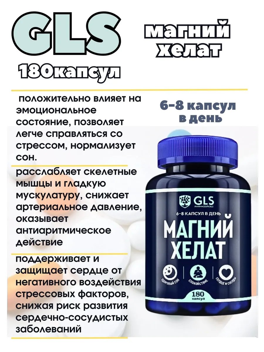 GLS Магний хелат для мужчин и женщин 180 капсул