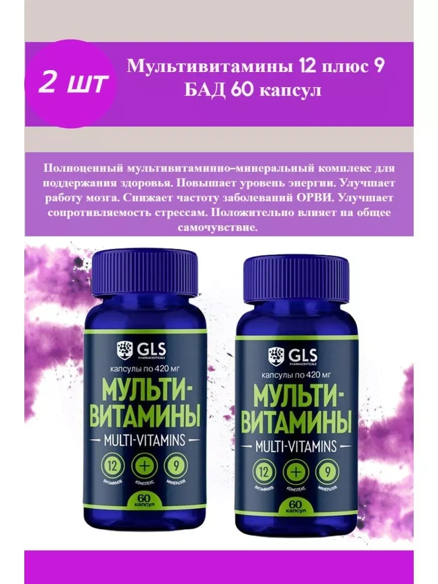 Gls мультивитамины 12+9 - биологически активная добавка (БАД) к пище, которая содержит комплекс важных витаминов и минералов для поддержки здоровья мужчин и женщин. Полноценный витаминно-минеральный комплекс для поддержания здоровья, сбалансирован с учетом суточной потребности в витаминах и минералах.Каждая капсула включает в себя необходимые витамины и микроэлементы, которые способствуют повышению уровня энергии и работоспособности, улучшению общего самочувствия, помогают поддерживать иммунитет, укрепляют нервную систему, улучшают работу мозга, памяти и концентрации внимания, способствуют снижению уровня стресса и нормализации сна, поддержанию здоровья репродуктивной системы. Эти мультивитамины 12+9 рекомендуются для использования в качестве дополнения к рациону, чтобы обеспечить организм всем необходимым для поддержки здоровья. Этот продукт является безопасным и эффективным средством для улучшения общего состояния и борьбы с недостатком витаминов и минералов. Перед применением рекомендуется проконсультироваться с врачом.РЕКОМЕНДАЦИИ ПО ПРИМЕНЕНИЮ: взрослым по 1 капсуле в день во время еды. Продолжительность приема - 1 месяц. При необходимости прием можно повторить.