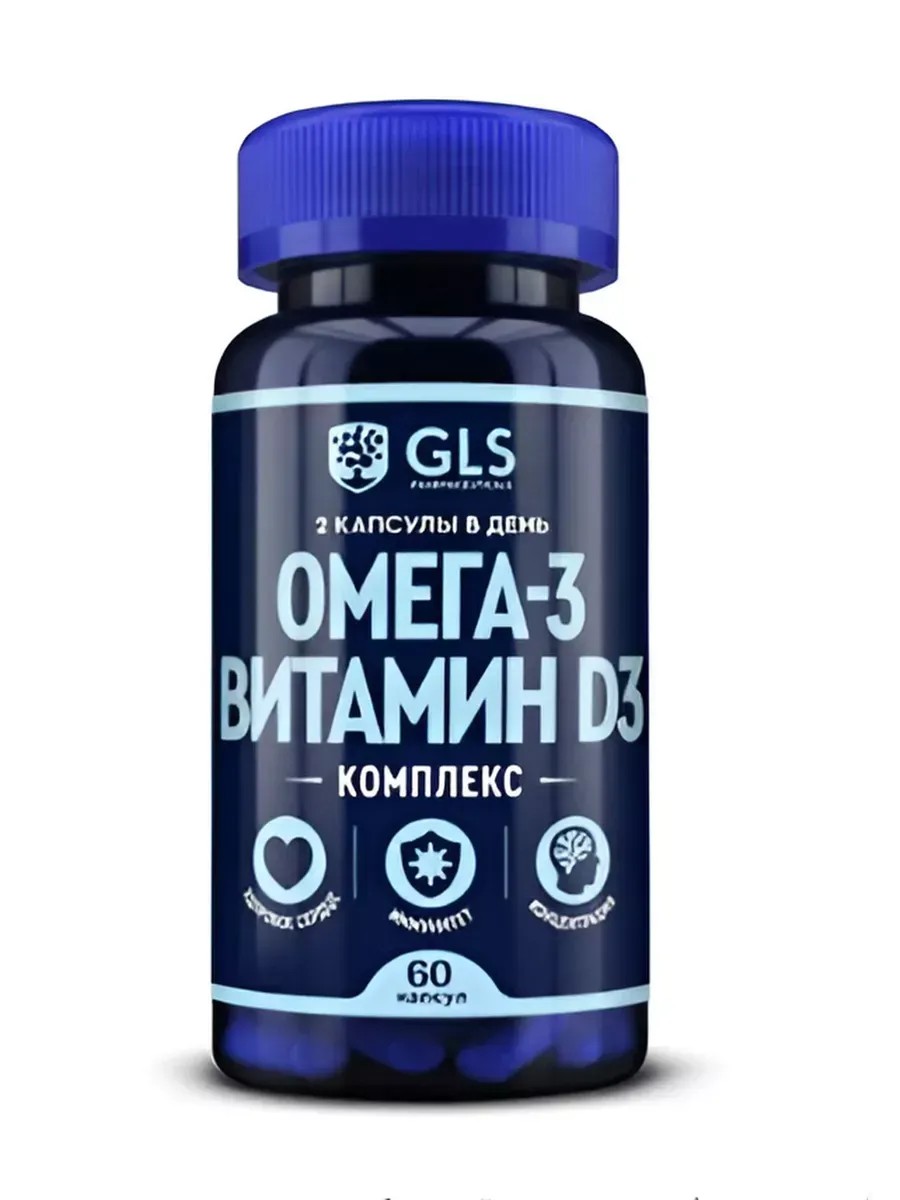 Биологически активная добавка к пище «Омега-3 Витамин D3 комплекс GLS», 60 капсул (капсулы массой 700 мг) - Укрепляет иммунитет, снижает риск развития, тяжесть течения и длительность бактериальных, вирусных респираторных инфекций, а также хронических воспалительных заболеваний.