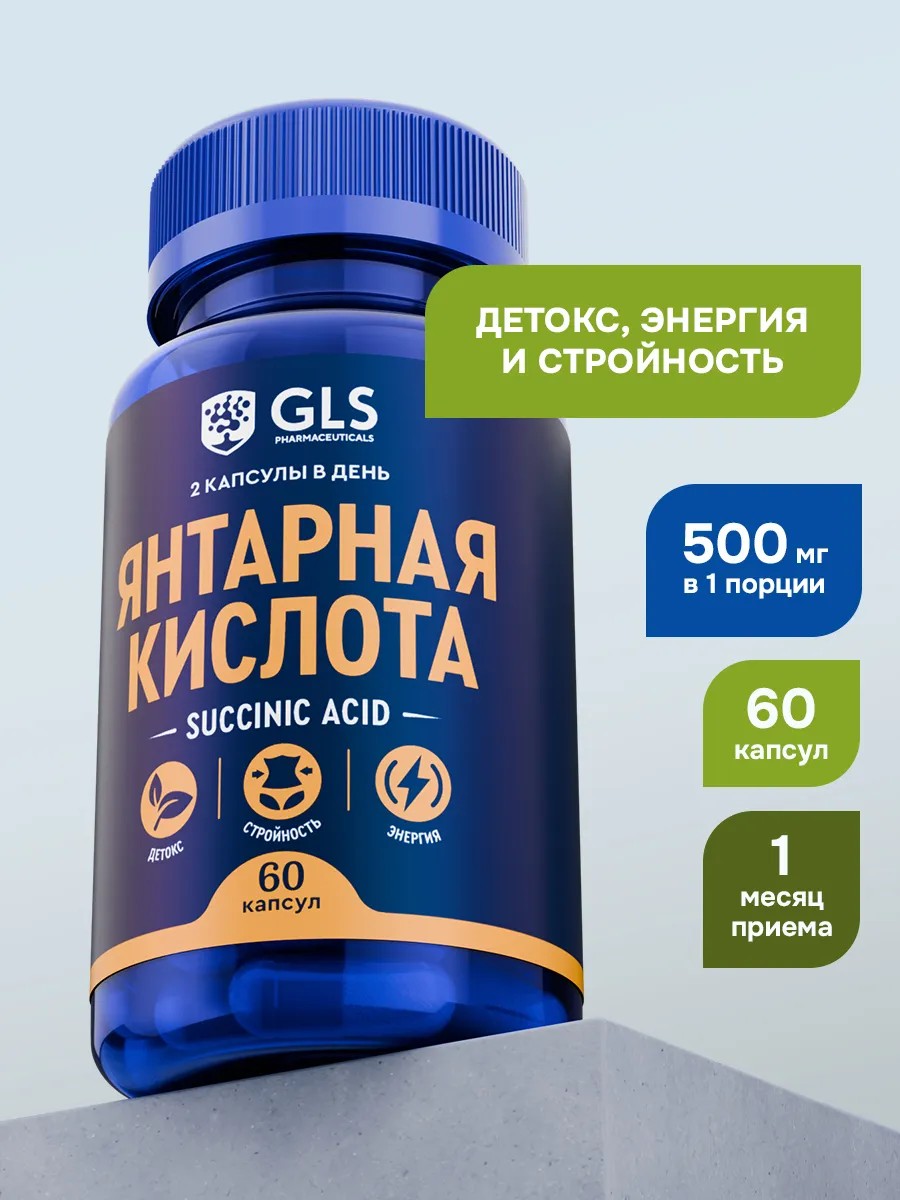 Янтарная кислота 500 мг GLS, витамины бады для энергии