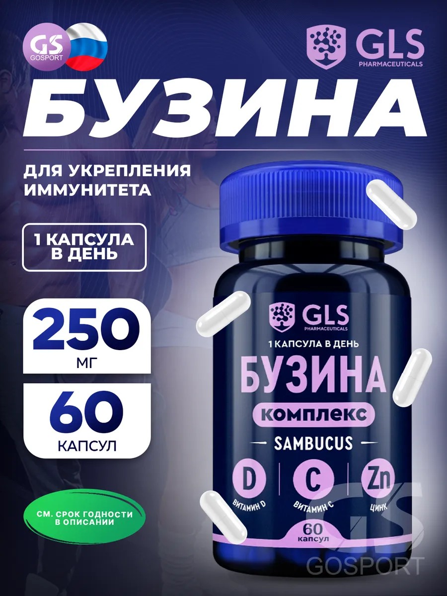 GLS pharmaceuticals Бузина с цинком, витаминами C и D 60 капсул
