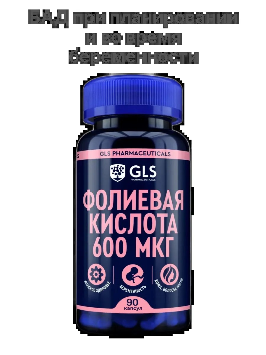 | Полное наименование товара | Gls фолиевая кислота 600 мкг, 90 капс. по 240 мг |