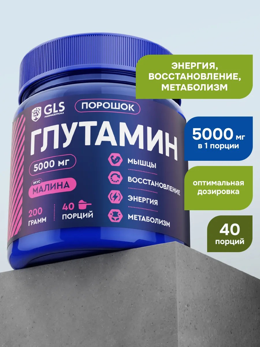 GLS pharmaceuticals Глутамин со вкусом малина / спортивное питание для мышц