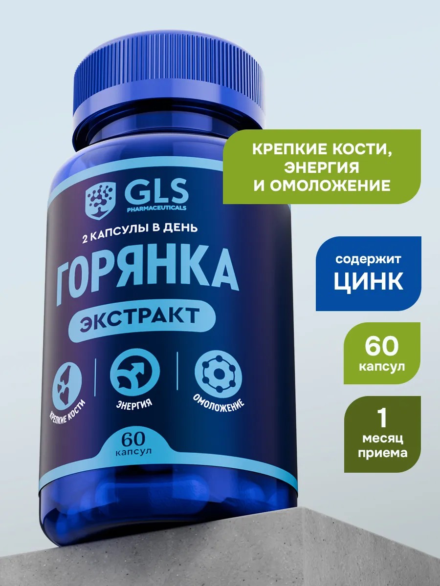 GLS pharmaceuticals Горянка с Цинком для тестостерона и здоровья, 60 капсул