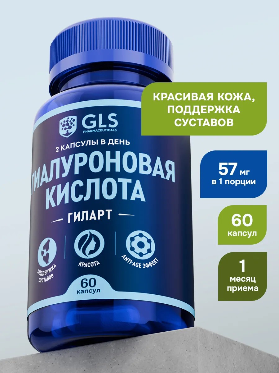 | Комплектация | Пластиковая банка - 1шт; Гиалуроновая кислота - 60 капсул |