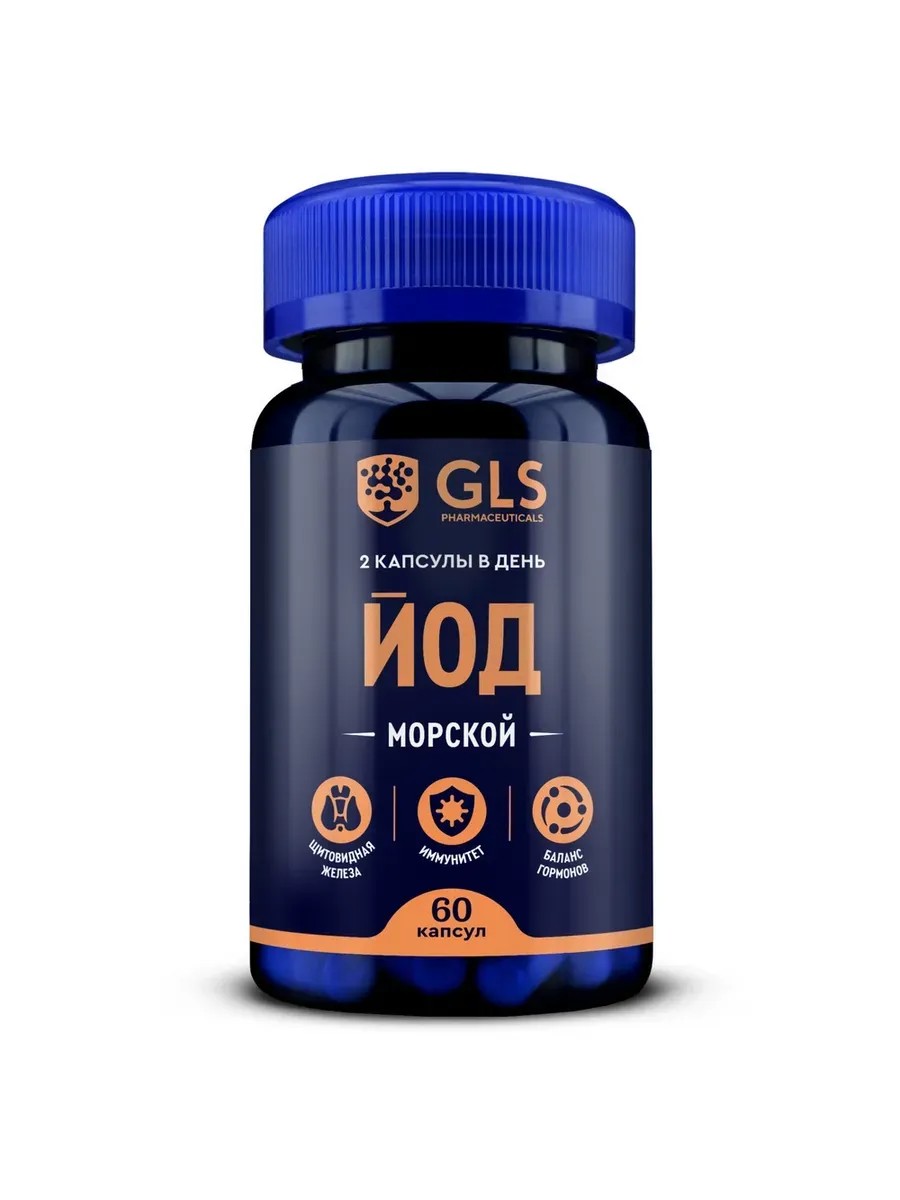 Gls йод капсулы массой 370 мг - это биологически активная добавка к пище, натуральный источник йода, который необходим для синтеза гормонов щитовидной железы. Стимулирует обмен веществ, ускоряет жиросжигание и уменьшает аппетит. Снижает уровень холестерина и риск развития атеросклероза. Способствует расширению сосудов и улучшению работы сердца, увеличивая доставку кислорода и питательных веществ к органам и тканям. Повышает уровень энергии и работоспособность. Регулирует работу и укрепляет иммунную систему, снижает риск развития бактериальных и вирусных заболеваний. Оказывает положительное влияние на работу мозга, улучшает память и способность к обучению. Рекомендуется взрослым.