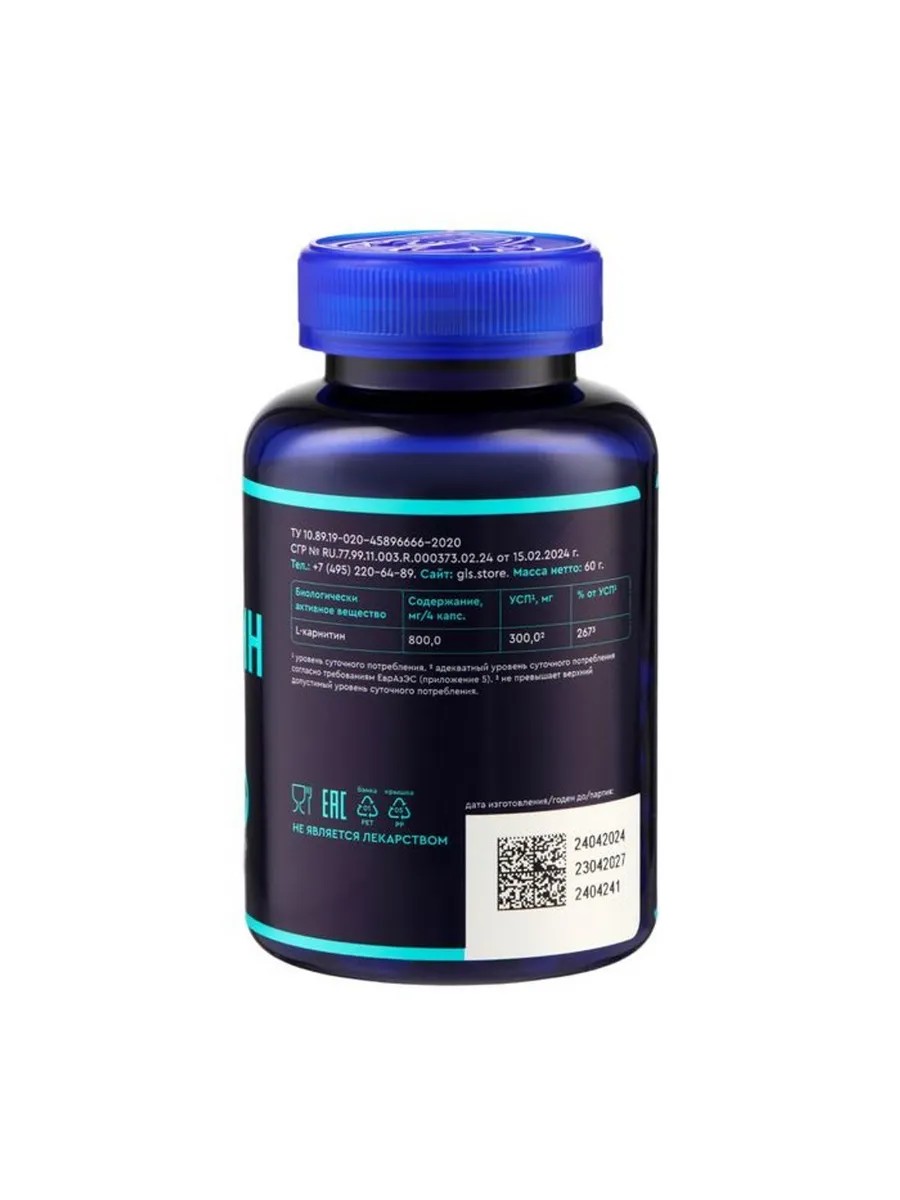 L-карнитин играет ключевую роль в энергетическом обмене организма. Он способствует снижению веса, сжигая жиры, увеличивает физическую выносливость и сокращает время восстановления у спортсменов, а также улучшает кислородное насыщение клеток и поддерживает иммунитет, усиливая защитные функции организма. Участник обмена веществ, карнитин помогает преобразовывать жир в энергию и поддерживает нормальную работу сердечно-сосудистой системы. Рекомендуемая суточная доза составляет 800 мг, принимая по 2 капсулы дважды в день во время еды. Курс приема – 1 месяц, при необходимости возможно повторение. Возрастные ограничения: 18+.