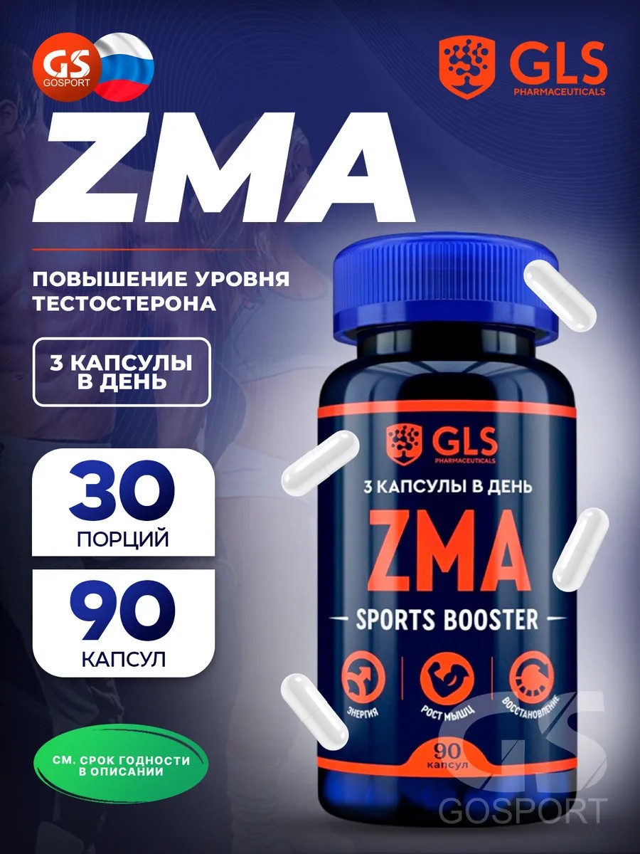 GLS pharmaceuticals Магний+цинк+B6 ZMA 90 капсул