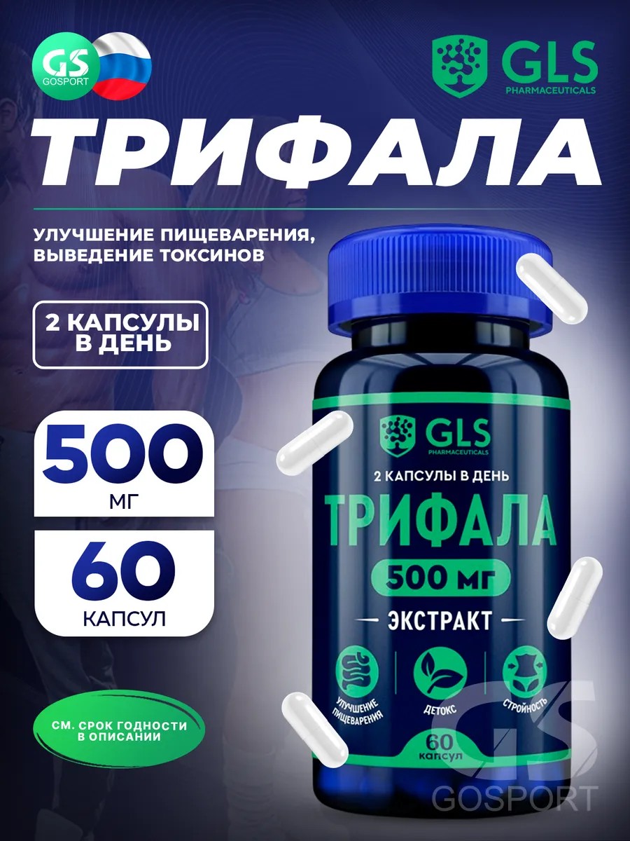 Годен до 13.07.2027. Экстракты Трифала (экстракт) 500 мг 60 капсул. Трифала Положительно влияет на здоровье желудочно-кишечного тракта. Улучшает перистальтику и желчевыделение, нормализует пищеварение. Способствует устранению и снижает риск развития запоров, а также его негативных симптомов, в т.ч. метеоризма. Очищает организм, способствуя выведению токсинов и поддержанию здоровья печени — Detox эффект. Снижает уровень триглицеридов и холестерина в крови, уменьшая риск развития сердечно-сосудистых заболеваний. Обладает противомикробным и противовирусным действием. Укрепляет иммунитет, снижает риск развития бактериальных и вирусных заболеваний. Способствует нормализации микрофлоры кишечника и профилактике дисбактериоза. Снижает всасывание углеводов и уровень сахара в крови, способствуя похудению. Препятствует процессу гликации — необратимого связывания коллагена с сахарами. Поддерживает красоту и молодость кожи, здоровье суставов. Обладает антиоксидантным и радиопротекторным действием. Снижает негативное влияние окислительного стресса на организм и оказывает профилактику возрастных заболеваний, в т.ч. глаз. Положительно влияет на эмоциональное состояние, снижает уровень кортизола, позволяет легче справляться со стрессом.Рекомендации по применениюВзрослым по 2 капсулы в день во время еды.Продолжительность приема: 1 месяц. При необходимости прием можно повторить.Противопоказания: индивидуальная непереносимость компонентов, беременность, кормление грудью. Перед применением рекомендуется проконсультироваться с врачом.Возрастные ограничения: 18+.