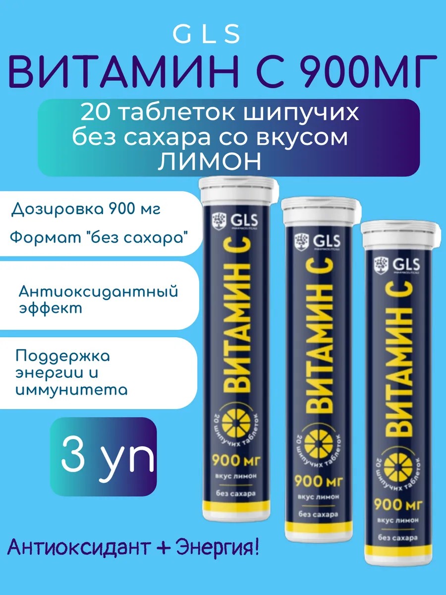 | Полное наименование товара | Gls витамин с 900 мг без сахара со вкусом лимона 20 шт. таблетки шипучие массой 3,8 г |