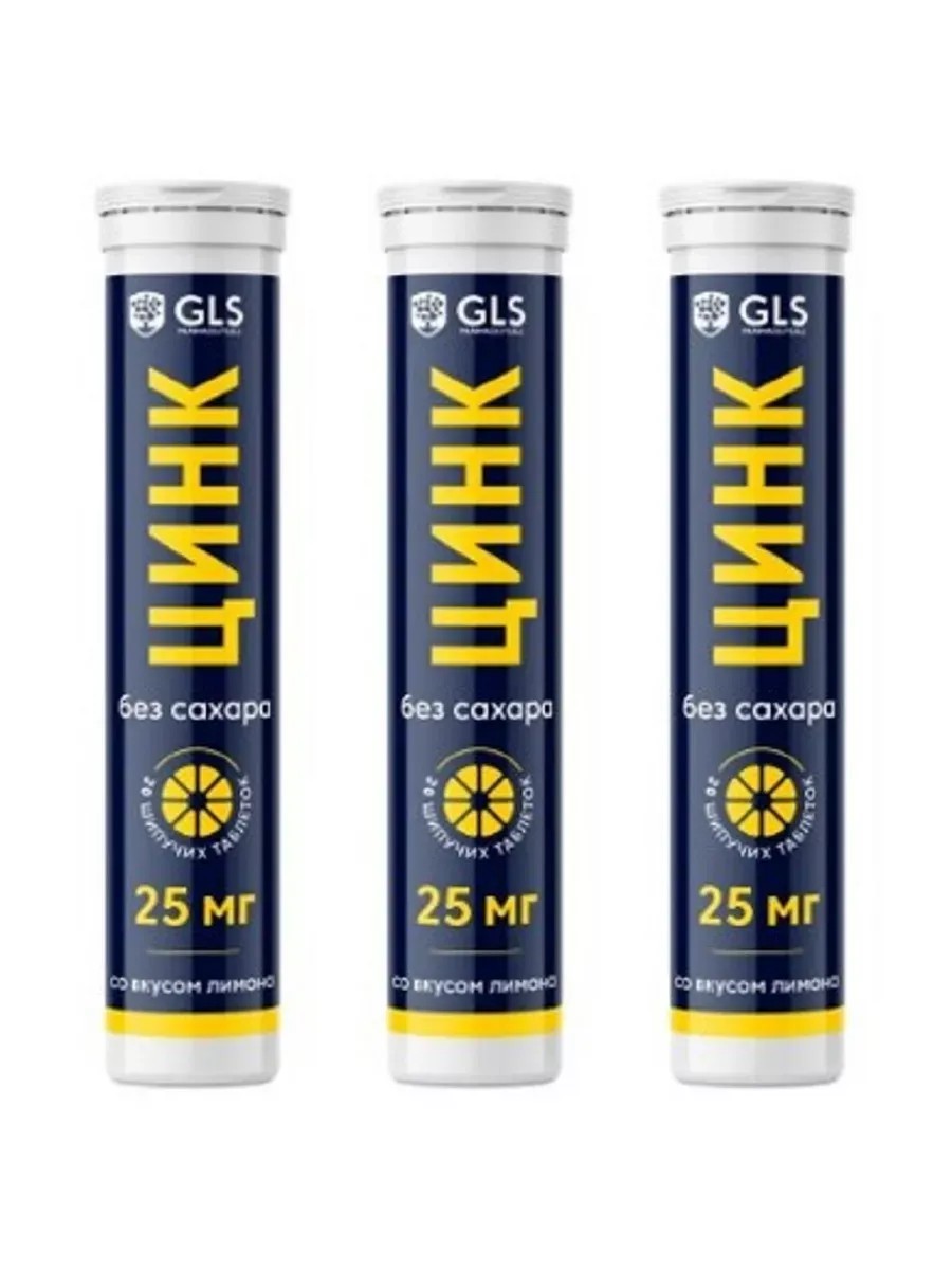 GLS ЦИНК без сахара со вкусом лимона - Биологически активная добавка (БАД) к пище - цитрат цинка - органический, легкоусвояемый источник цинка.Оказывает иммуномодулирующее действие, укрепляет иммунитет.Ускоряет выздоровление, снижает тяжесть симптомов и риск развития осложнений бактериальных и вирусных заболеваний в т.ч. COVID-19.Стимулирует синтез коллагена и кератина, регулирует работу сальных желез.Укрепляет и улучшает внешний вид кожи, волос и ногтей.Предотвращает выпадение и стимулирует рост волос.Ускоряет заживление различных повреждений кожи.Проявляет антиоксидантные свойства, способствует замедлению процессов старения в т.ч. возрастных изменений сетчатки и ухудшения зрения - Anti-age effect.Принимает участие в синтезе половых гормонов, поддерживая репродуктивную функцию и сексуальную активность у женщин и мужчин.Стимулирует секрецию и повышает чувствительность клеток к инсулину, способствуя регуляции уровня сахара в крови.1 шипучая таблетка (суточная дозировка) содержат:Цинка цитрат в т.ч. цинк 25 мгПищевая ценность 1 таблетки (3,8 г) (средние значения): углеводы - 1,5 гЭнергетическая ценность: 40 кДж/ 10 ккал