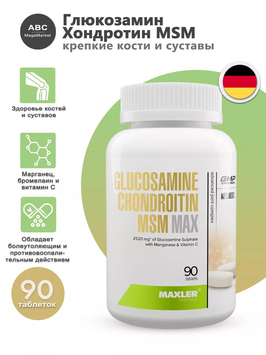Глюкозамин хондроитин мсм от Maxler — это биологически активная добавка в таблетках, содержащая хондропротекторы глюкозамин, хондроитин и метилсульфонилметан (MSM). Суставы, связки, хрящи и сухожилия состоят из соединительной ткани, которая может разрушаться под воздействием физических нагрузок, травм, болезней и возрастных изменений, что приводит к потере подвижности и гибкости, боли. Глюкозамин способствует восстановлению хрящевой ткани и улучшает подвижность суставов, хондропротекторы для суставов. Хондроитин помогает удерживать влагу в хрящах, обеспечивая их эластичность и предотвращая разрушение. Сера МСМ, или метилсульфонилметан, представляет собой противовоспалительное соединение, которое может помочь справиться с воспалением в наших хрящах. Принимая комплекс Глюкозамин с Хондроитином и МСМ, можно сохранить здоровую эластичность и помочь восстановить ткани суставов. Глюкозамин хондроитин мсм для суставов являются важными компонентами соединительной ткани, и их прием дополнительно обеспечивает организм необходимым сырьем для восстановления связок, суставов и хрящей. MSM, в свою очередь, помогает снять боль и уменьшить воспаление при больших нагрузках. Данная добавка рекомендуется как дополнительный источник глюкозамин с хондроитином сульфата для мужчин и женщин. Если вы хотите оставаться здоровым и молодым, выбирайте наши продукты для поддержания здоровья, формы и красоты вашего организма. Рекомендации по применению БАД Германия принимайте по 1-3 таблетки Glucosamine Chondroitin + MSM в день, желательно во время еды. Рекомендуется принимать комплекс курсами по 3-4 месяца 2 раза в год.