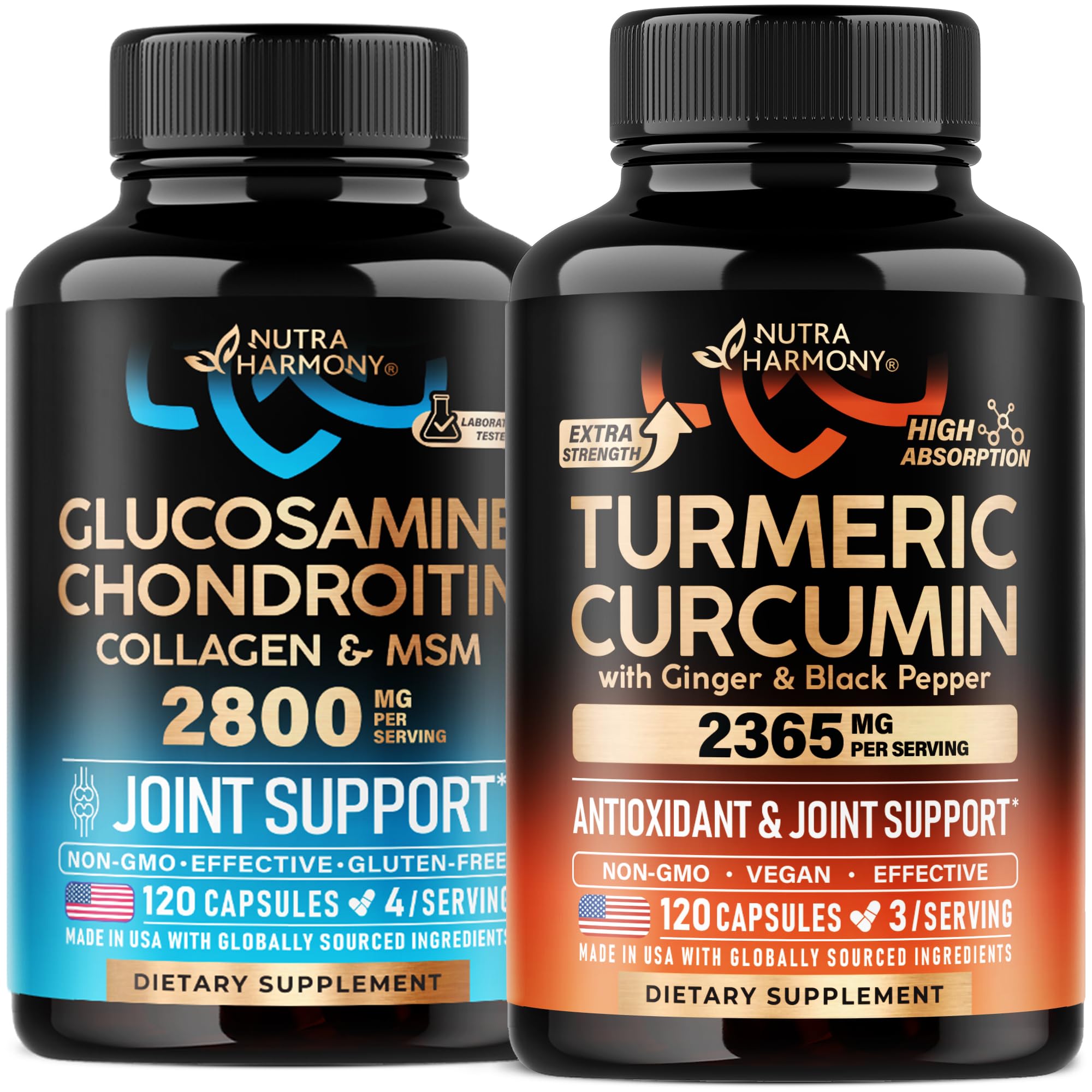 Glucosamine Chondroitin Capsules Turmeric Curcumin Capsules by Nutraharmony.