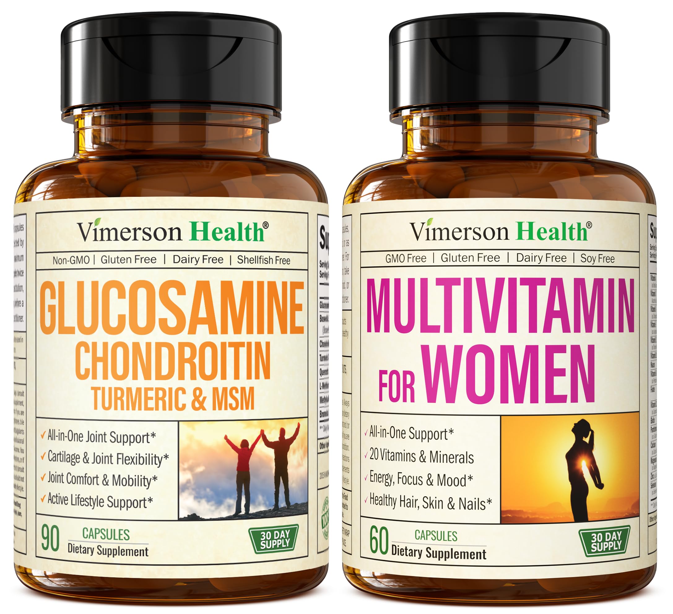 Glucosamine Chondroitin Turmeric + Multivitamin for Women 2-Bottle Supplement Bundle for Her. Healthy Immune Response Joint Support Antioxidant Properties