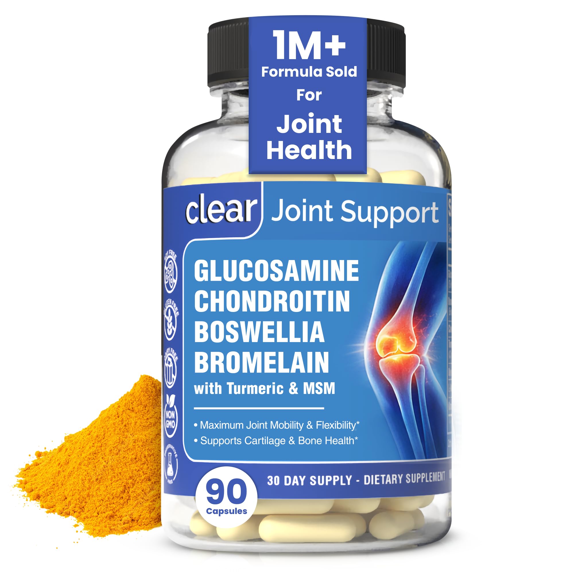 Premium Quality Safety You Can Trust: Manufactured in the USA in an FDA-registered, GMP-certified facility following strict quality standards. Each batch is third-party tested for quality and consistency. Formulated with Glucosamine Sulfate, non-GMO ingredients, and made without artificial colors or flavors. Designed for adult daily joint wellness support. Designed for Everyday Comfort: Smooth, easy-to-swallow capsules with no strong aftertaste, formulated for convenient daily use. Gentle and easy to incorporate into your routine. For best results, take with meals as part of your regular wellness regimen. Targeted Joint Comfort Wellness Support: Our formula goes beyond basic glucosamine, featuring Turmeric (4:1 extract), Boswellia Extract (65 Boswellic Acids), and Quercetin. These plant-based compounds support a balanced inflammatory response and protect joints from oxidative stress, promoting comfort, mobility, and flexibility. Perfect for post-workout recovery, long days on your feet, or maintaining joint health in an active lifestyle. Complete 8-in-1 Joint Health Mobility Support: Advanced formula combines Glucosamine, Chondroitin, MSM, Turmeric (4:1 extract), Boswellia, Quercetin, L-Methionine, and Bromelain to support joint structure, mobility, and overall flexibility. Whether you're 40 or 70, our formula supports healthy joints for back, knees, hips, hands, and shoulders. Clinically Studied Sulfate Forms: Formulated with Glucosamine Sulfate Potassium (1500mg) and Chondroitin Sulfate (150mg) - the forms most commonly studied in joint health research. These sulfate forms are more widely used that HCI forms in well-formulated joint supplement support supplements due to their stability, absorption and established use in clinical studies. Ideal for active adults, athletes, and those seeking research-backed joint nutrition.