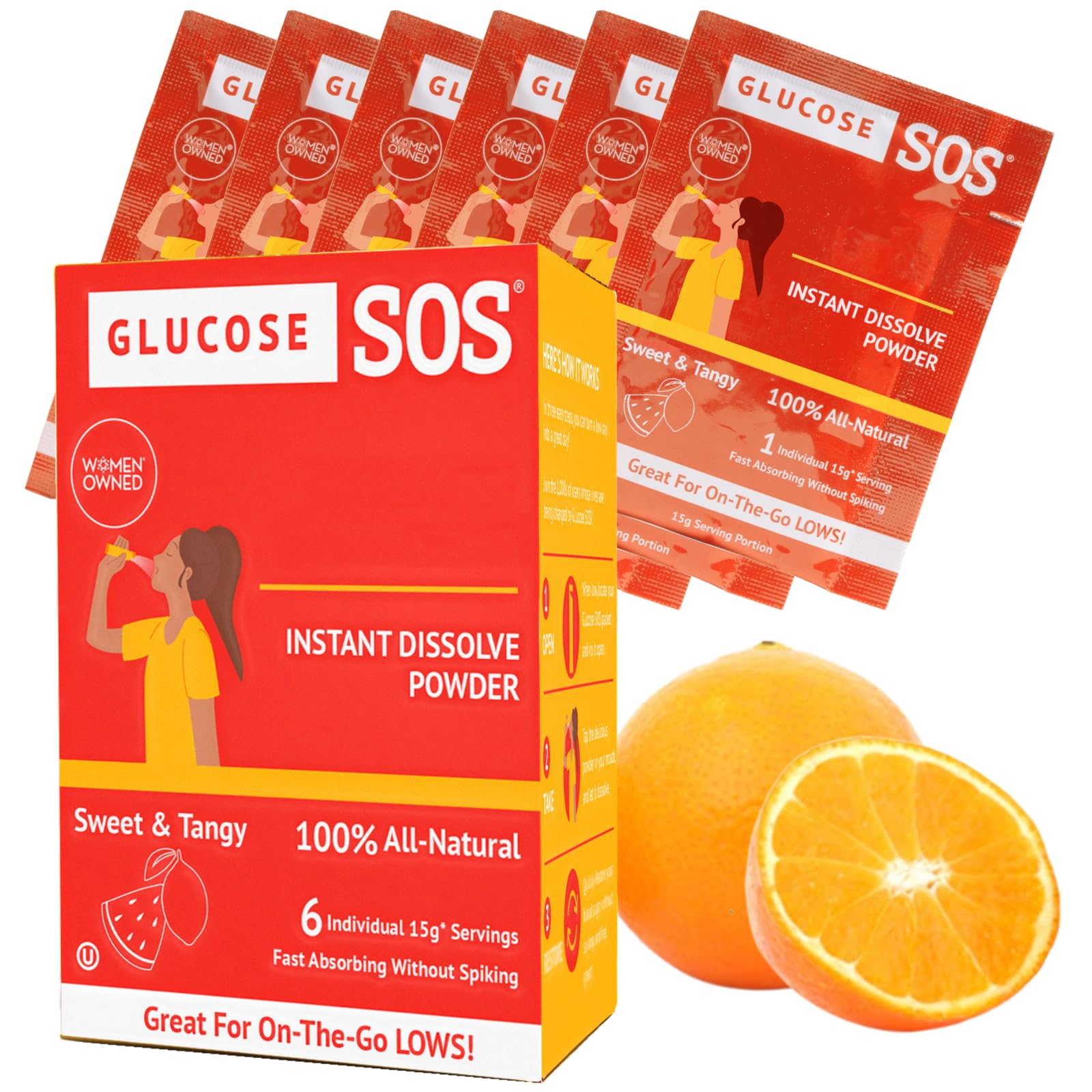 Reach for Glucose SOS for a Fast Energy Lift - Developed by a "mom on a mission," to help her two daughters, our glucose powder acts fast. Dedicated to helping our community, our glucose sachets are also trusted by first responders. Rely on us to provide you with the only glucose product you'll need. Glucose SOS is here to save the day!. An All-Natural, Delicious Glucose Supplement - Unlike many glucose tablets blended with just one flavor, our powder is formulated with 4 different delicious flavors - sweet and tangy, fruit medley, green apple crisp and kiwi-strawberry. It is free of artificial flavors, sodium, preservatives, gluten, and caffeine and is temperature tolerant, meaning it won't freeze or melt. This Glucose Powder Is Made to Last! Made in the U.S.A, these delicious sachets don't expire, meaning the only time you need to replace them is when your supply is low. Keep your Glucose SOS powder packets in the cabinet, in your car, or store them in your pocket when you're out and about. A Quick Convenient Solution - Easy to take glucose powder wherever you are. Our packets of dissolvable dextrose powder instantly tear open for immediate use. No water or prep is needed when ingesting. Each sachet provides exactly 15g of fast-acting glucose the exact dose recommended by the ADA, in the most lightweight portable form. Formulated With Fast-Absorption Technology - We understand how vital it is to have a natural glucose product you can quickly reach for. Our glucose powder rapidly absorbs in as little as 15 minutes and our slim, waterproof pouches fit anywhere, and go everywhere.