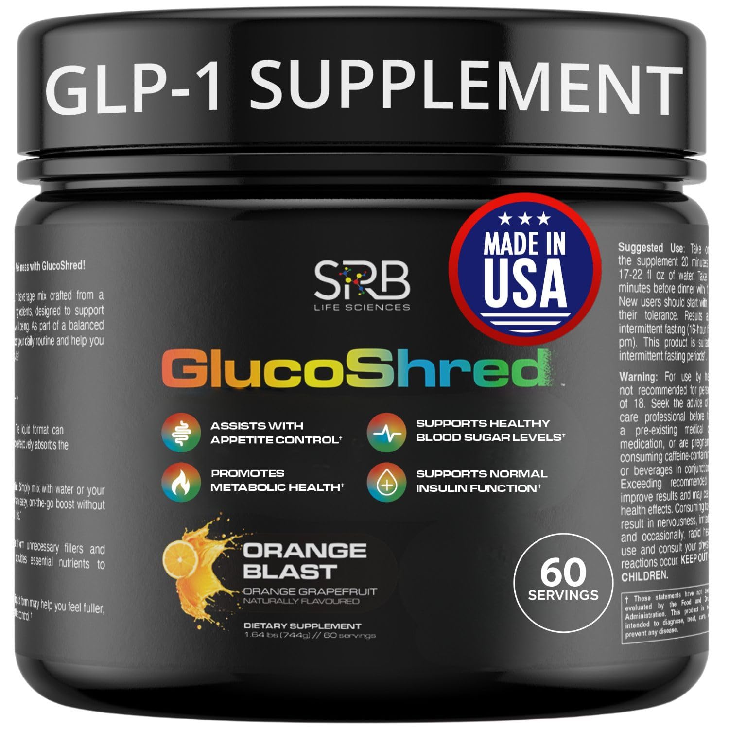 GlucoShred-Advanced GLP-1 Drink Mix | Activates Enhances & Prolongs Your Body's GLP-1 Naturally for Blood Sugar Metabolism & Appetite | Berberine Cinnamon ALA Chromium | Tangy Orange | 30 Day Supply