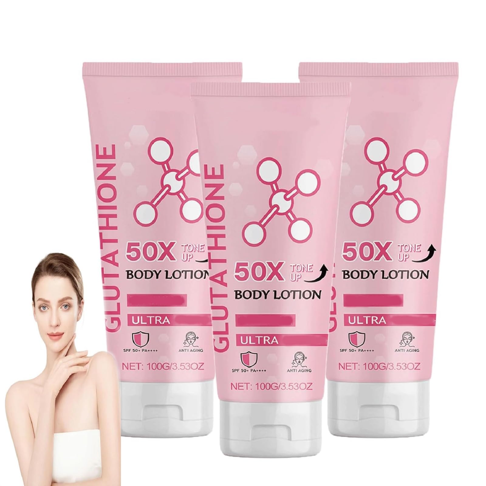 Fast Absorption Fresh:Quickly absorbed into the skin without leaving any greasy residue. Its elegant fragrance provides a delightful sensory experience, making it suitable for use in any time. Deep Moisturizing Hydrating: Our glutathione 50x body lotion moisturizes your skin throughout the day, deeply locking in moisture to maintain smoothness and elasticity. Visible Skin Improvement: Experience noticeable enhancement in skin texture, leaving it feeling smooth, delicate, and firmer. Glutathione 50x Tone Up Body Lotion:This Glutathione Body Lotion is rich in multiple beneficial ingredients for the skin, forming a natural protective barrier on the surface to help lock in moisture and restore radiance to your skin. Premium Natural Formula: Advanced glutathione body lotion with complex for enhanced skin and moisturizing effects. Make your skin smoother.