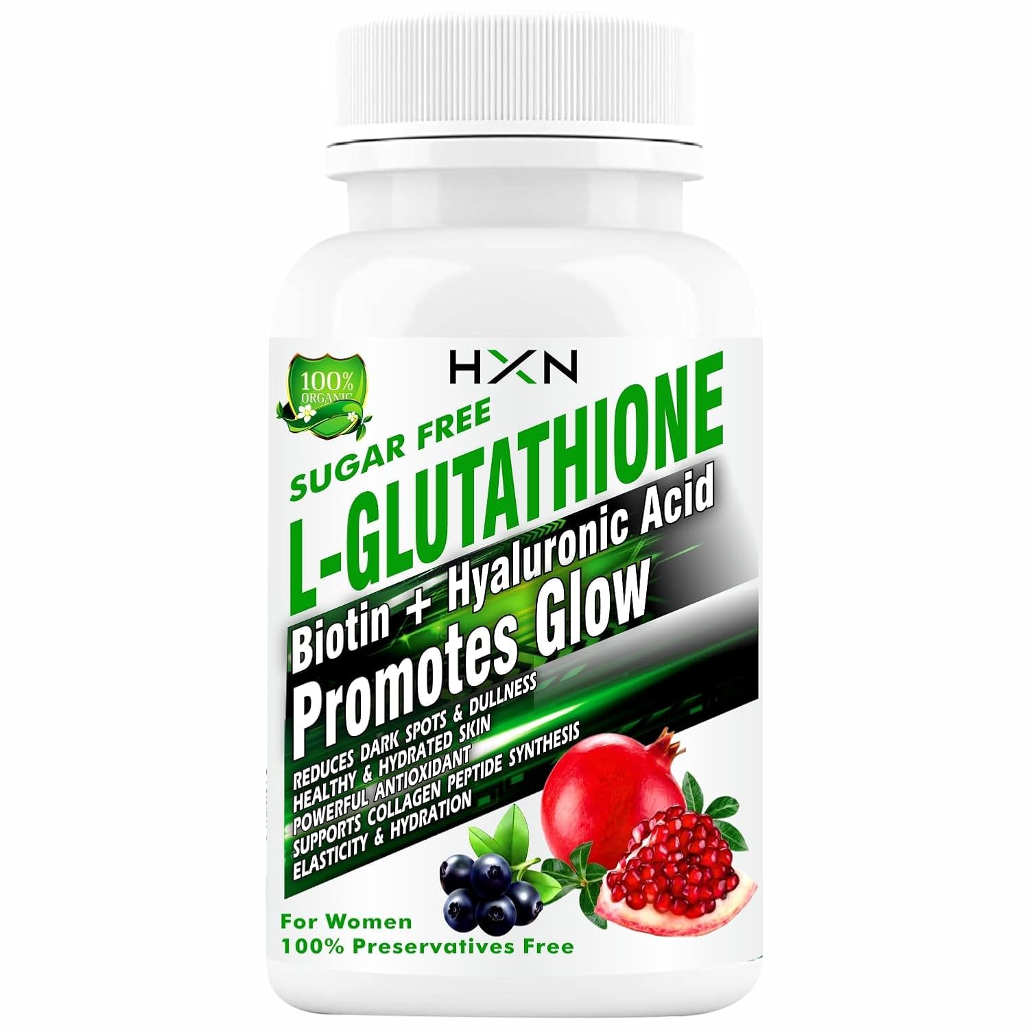 Glutathione Tablets 1000mg For Skin Whitening. L-Glutathione, Vitamin C, E, Hyaluronic Acid, ALA, Biotin, Collagen Supplements For Women Healthy Face-60 Glow Tablet (No Capsule Capsules Pack 1)Promote Skin Health: Glutathione Tablets help neutralize and eliminate free radicals found in the environment that can cause dullness, sagging, and patches to the skin at a cellular level, resulting in clearer, smoother, brighter, and more healthy skin. Adding glutathione to your daily routine will help protect your skin while also giving it a brighter, cleaner, smoother, and more youthful appearance. L-glutathione tablet 1000mg also promotes skin health by preventing melanin synthesis. Promote Skin Health: Glutathione Tablets help neutralize and eliminate free radicals found in the environment that can cause dullness, sagging, and patches to the skin at a cellular level, resulting in clearer, smoother, brighter, and more healthy skin. Adding glutathione to your daily routine will help protect your skin while also giving it a brighter, cleaner, smoother, and more youthful appearance. L-glutathione tablet 1000mg also promotes skin health by preventing melanin synthesis. Skin Face Hydration: As the body's largest organ, your skin needs special care. Our tablet, which contains acai berry and vitamin E, promotes healthy, glowing whitening skin! L-Glutahione tablets 1000mg have been shown to support the maintenance of a healthy skin tone and nails. Because we use a combination of natural extracts and vitamins, we can provide unrivaled results. Glutathione tablets support the defense against free radicals and the reduction of oxidative stress. 2x Powerful Antioxidant For Skin: Glutathione tablets 1000mg (GSH) promote the reduction of oxidative stress caused by free radicals. It's also been said to assist in detoxifying the body and boost the liver, immune system, and cardiovascular health. The l-glutathione tablet supports the neutralization and elimination of free radicals found in the environment and Vitamin C is a "Super Antioxidant" that empowers each other in detoxing neutralizing harmful free radicals. Scientifically Formulated Skin Nourishment: L-Glutathione 1000mg, N-Acetyl cysteine, Biotin, and Vitamin E are all included in this scientifically designed nutritional supplement for good skin health. Glutathione's antioxidant properties include recycling vitamins E and C and acting as an antioxidant in many tissues. Glutathione supplementation has been shown to help reducing the ripening process. glutathione tablets with hyaluronic acid, alpha lipoic acid, NAC, and grape seed extract.