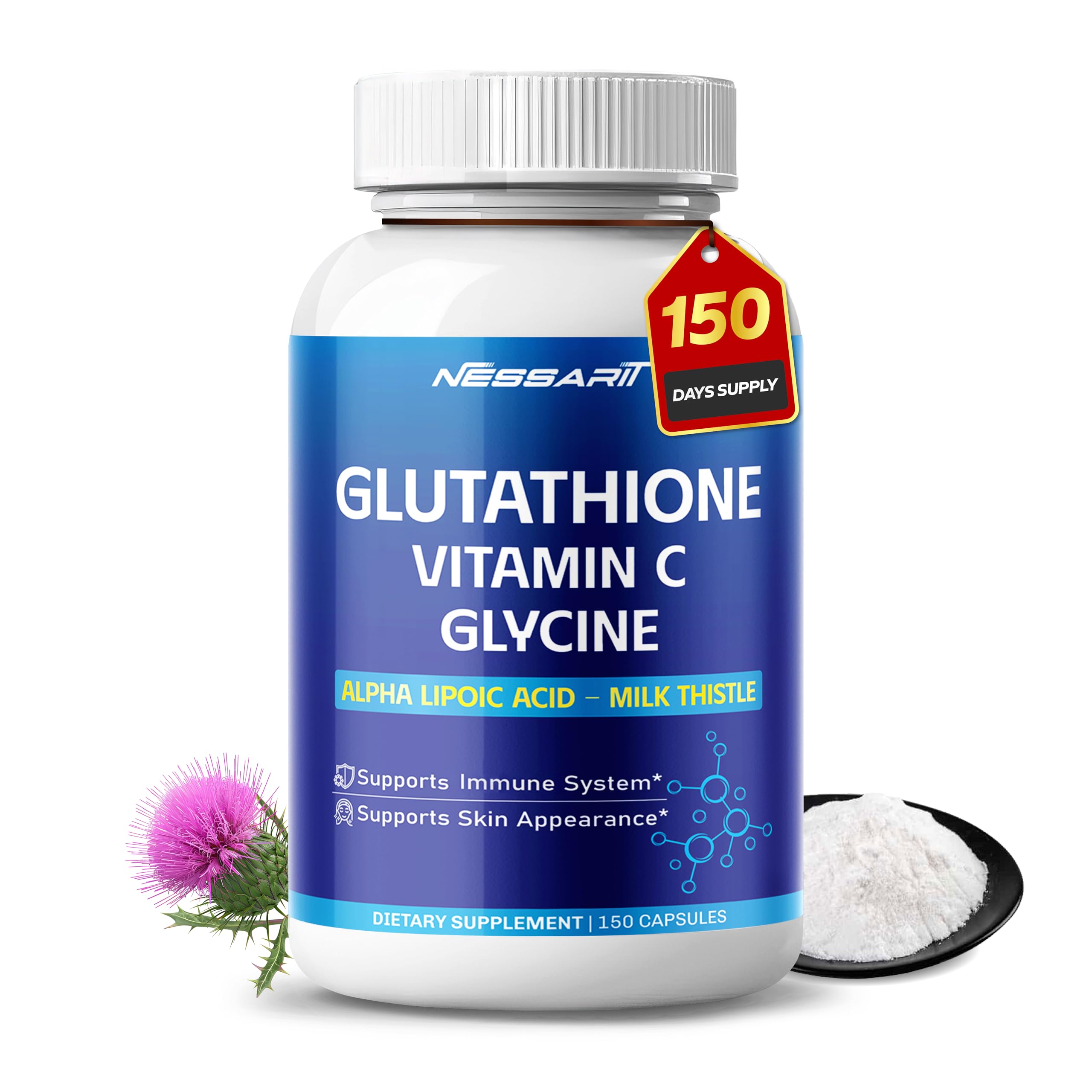 Glutathione Vitamin C Glycine Alpha Lipoic Acid & Milk Thistle Support Immunity & Radiant Skin 150 Capsules 150 Count (pack of 1)