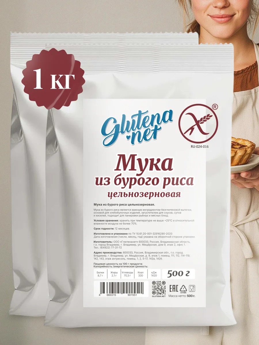 glutena.net Мука из бурого риса цз без глютена 1000 г