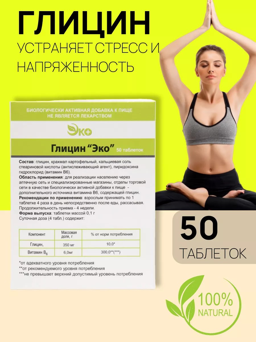 Глицин Экотекс 50 таблеток
